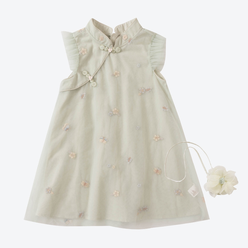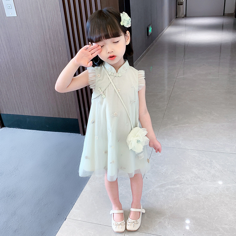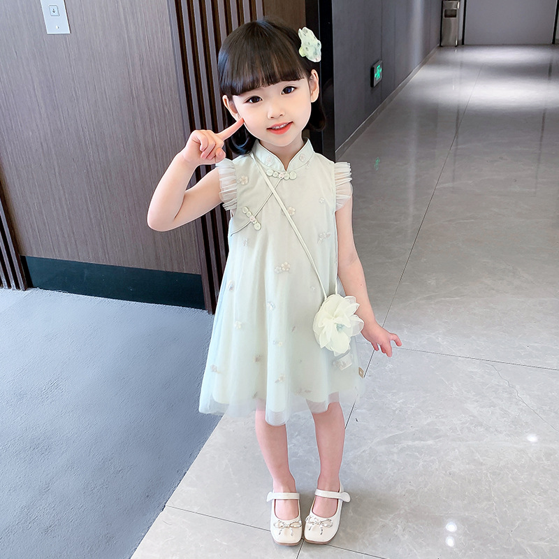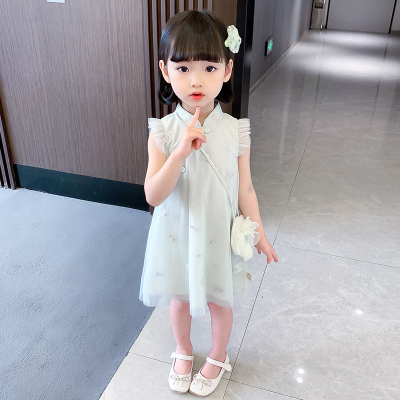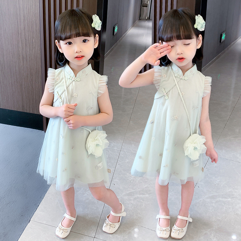 女童夏季新款女中小童女童洋气复古旗袍裙唐装