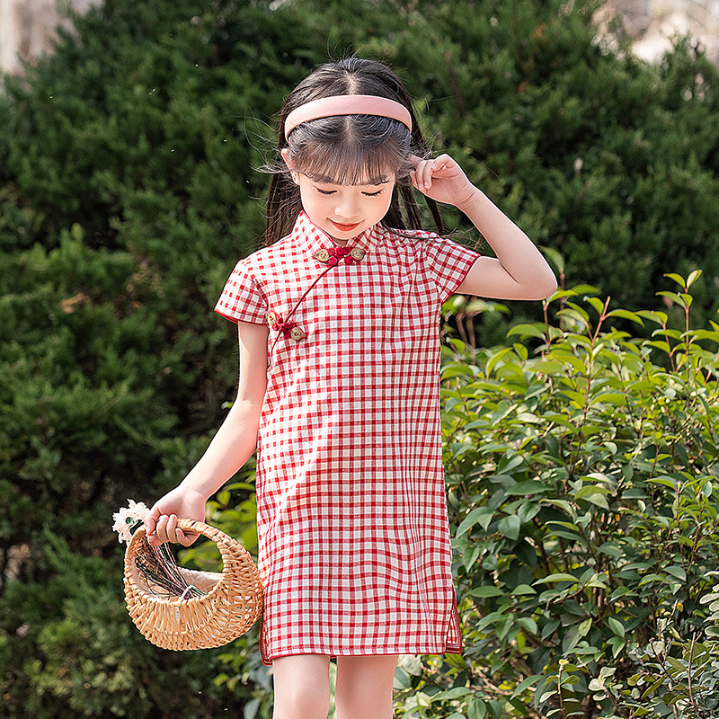 夏季新款优雅休闲无袖格纹拼接背心裙长款宽松百搭A型连衣裙