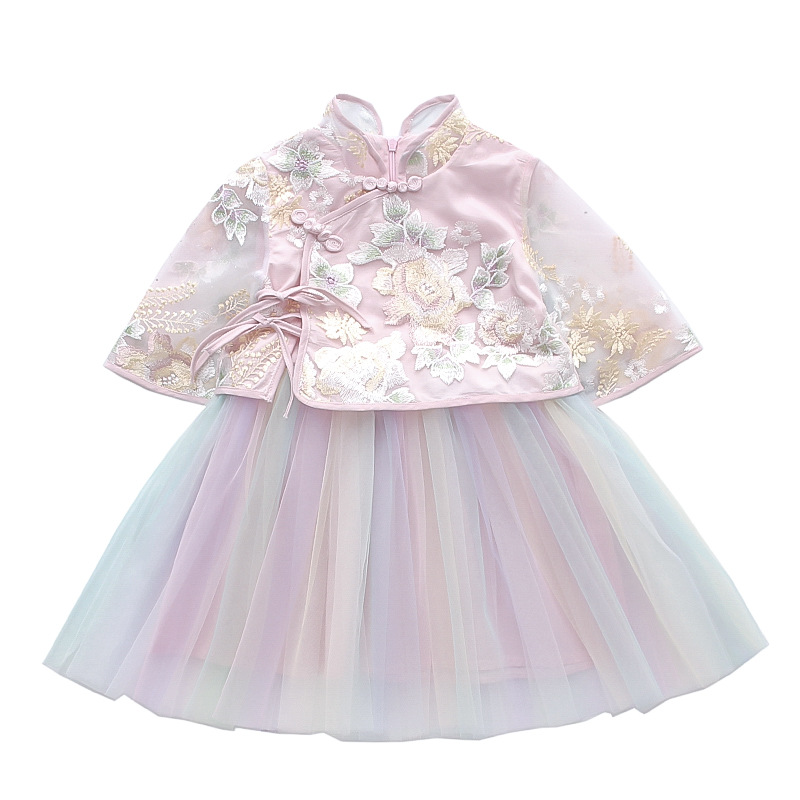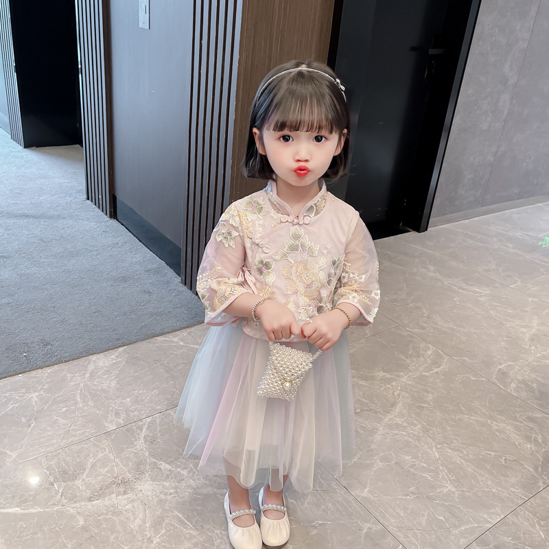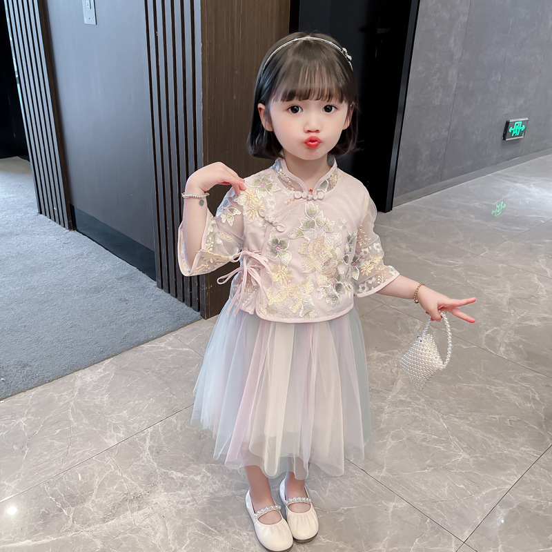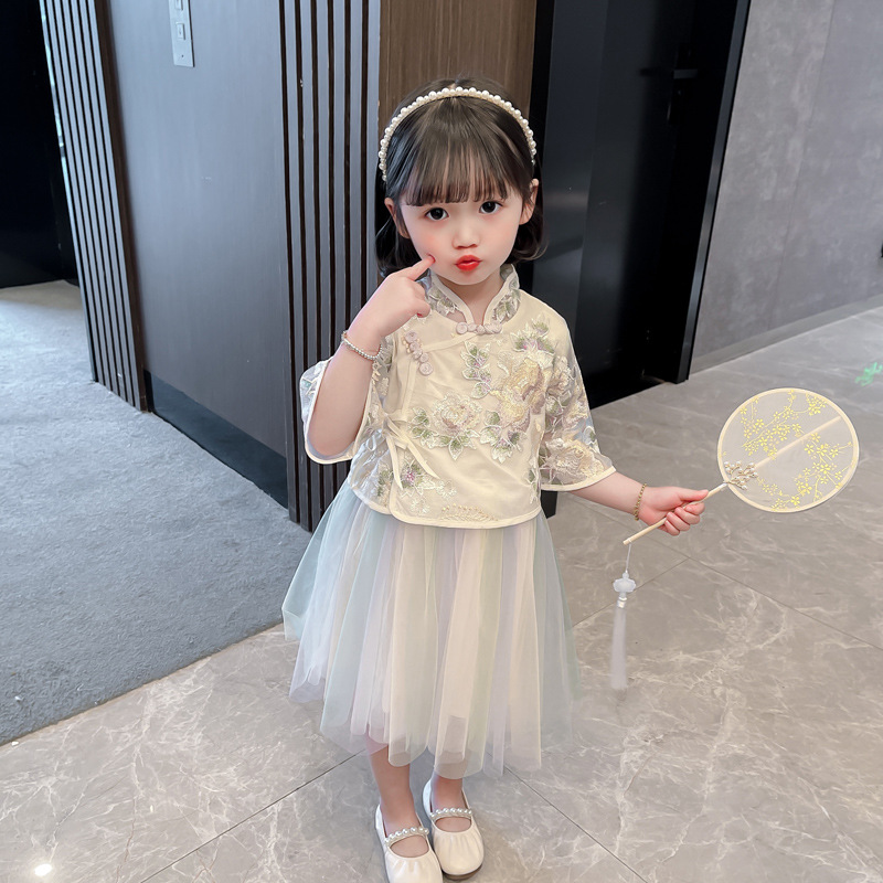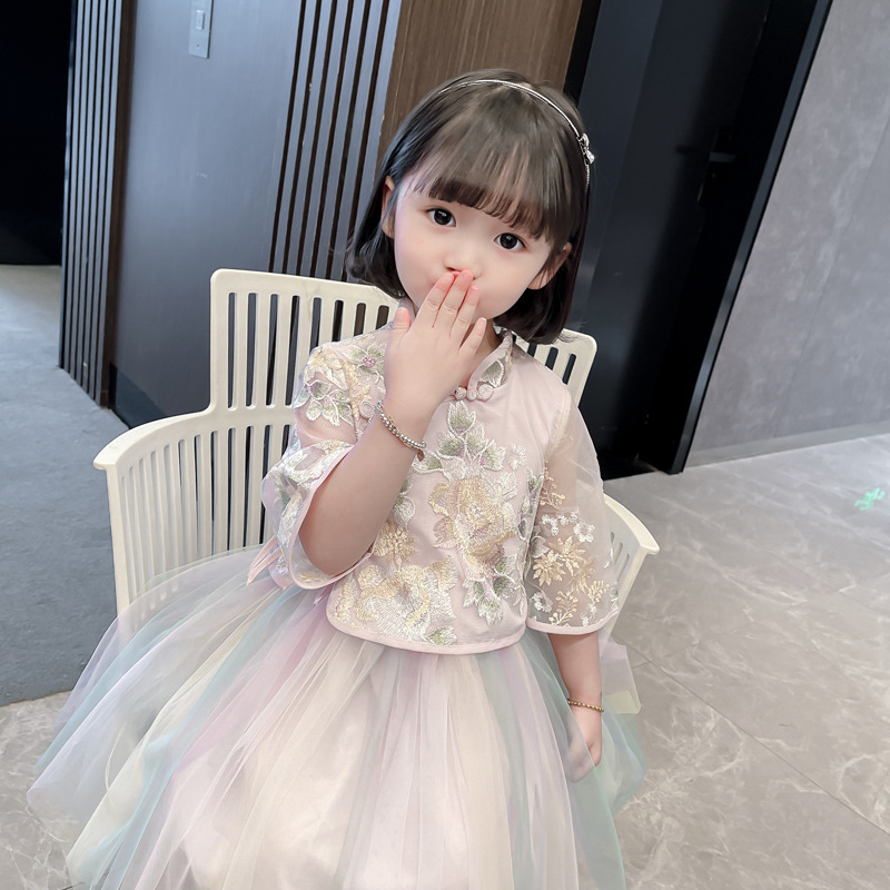 中国风春夏新款小女孩改良中国风纱裙唐装