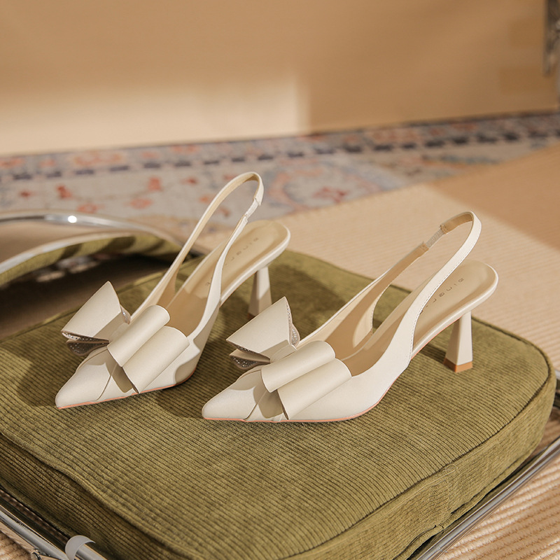 高跟鞋女细跟新款尖头包头一字带蝴蝶结凉鞋