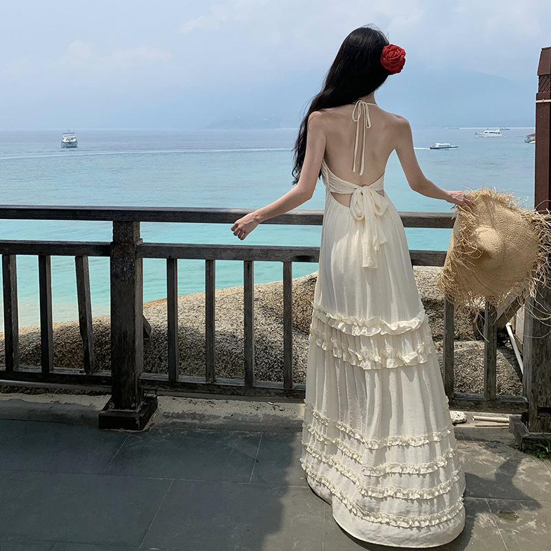 度假风女夏季精致文艺感90%天丝背心裙连衣裙