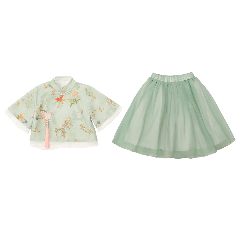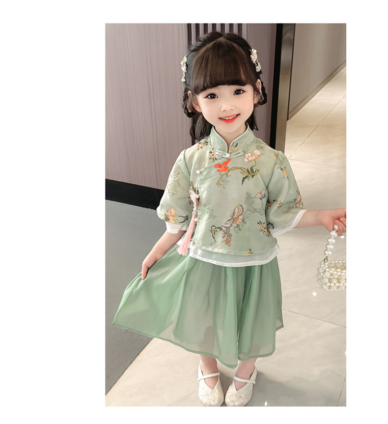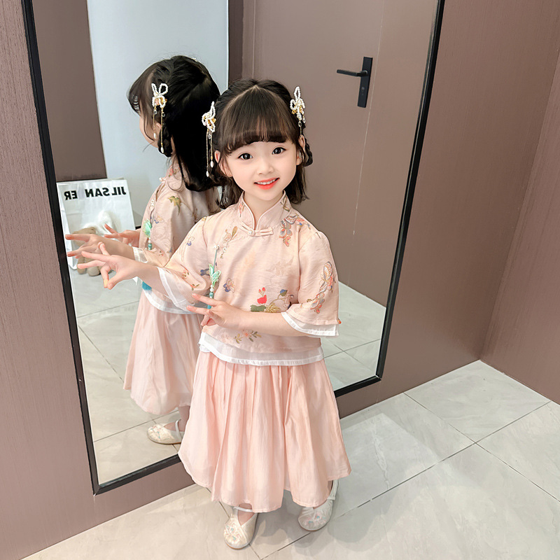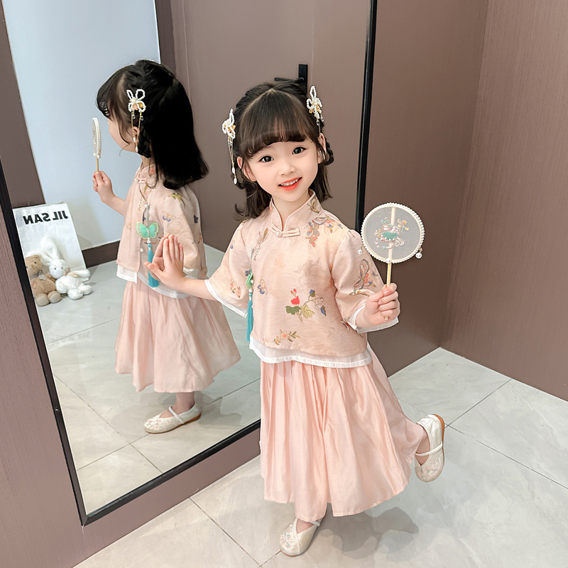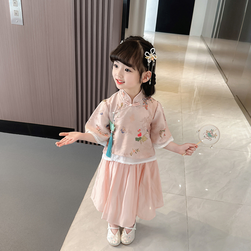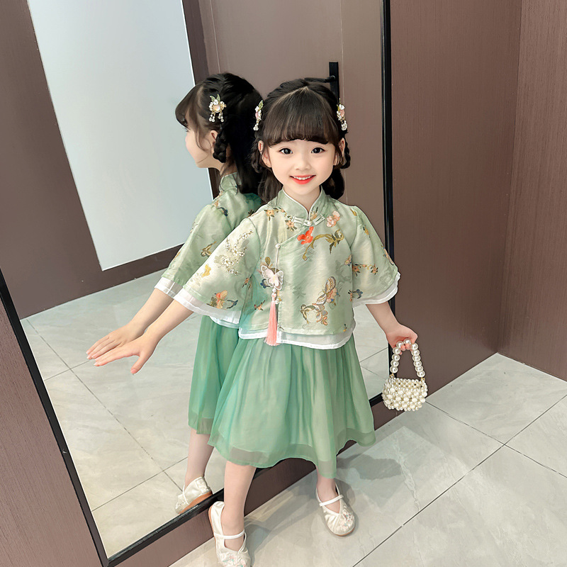 女童夏季新款雪纺中国风唐装套装两件套表演服唐装