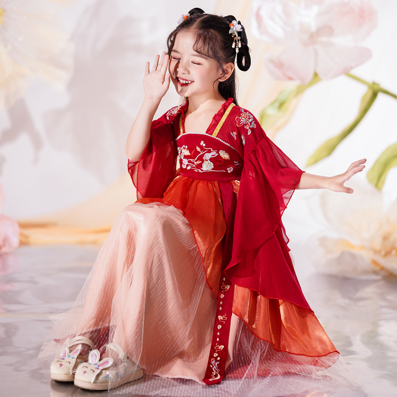 汉服女童连衣裙夏装中国风儿童超仙小孩古风襦裙古装演出唐装
