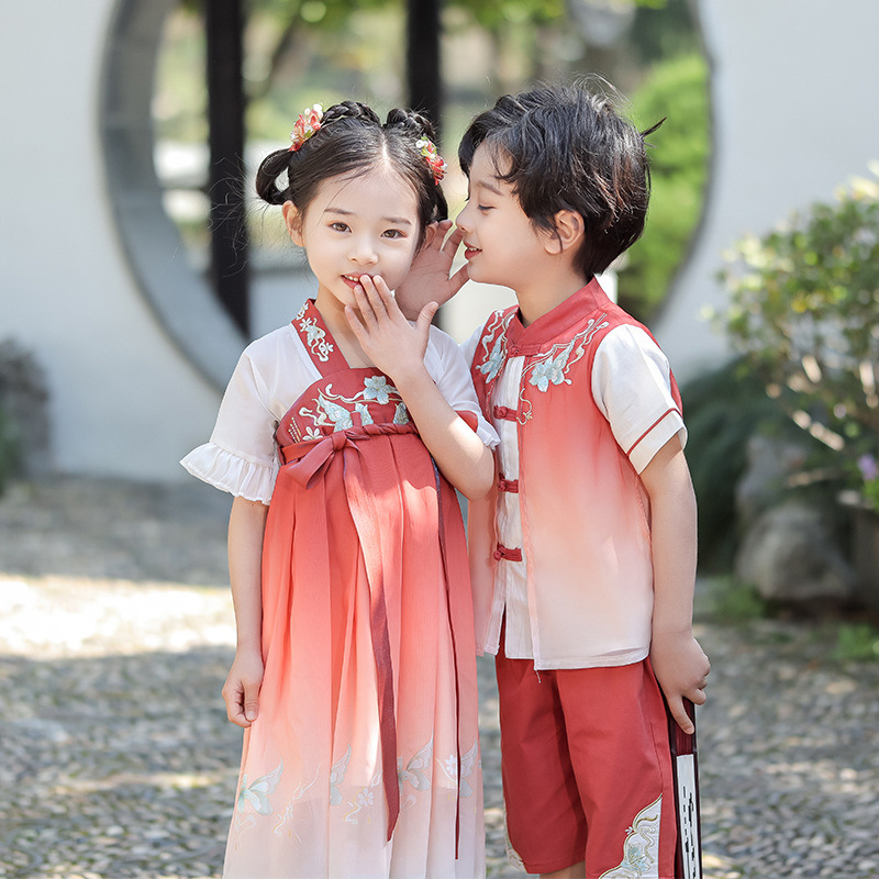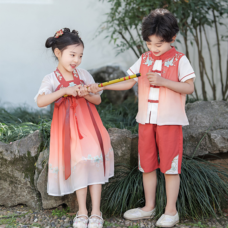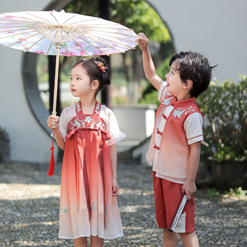 女童汉服男童唐装新款连衣裙夏装汉服裙子六一表演服唐装