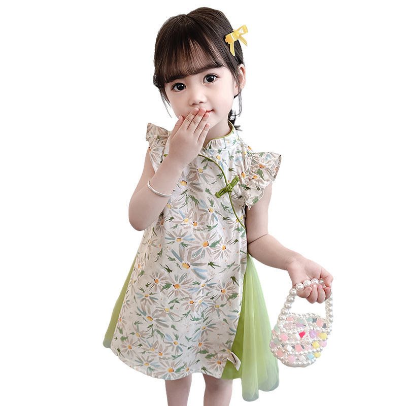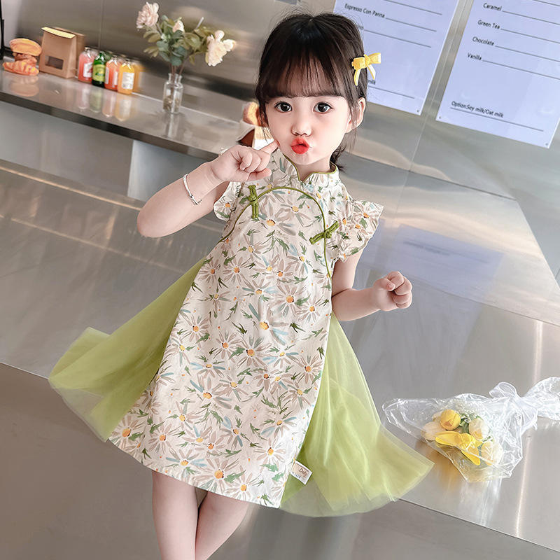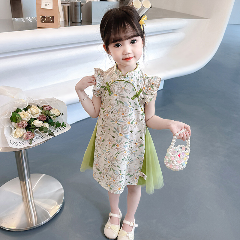 女童中国风超仙时尚洋气唐装夏季新品碎花拼接旗袍裙唐装