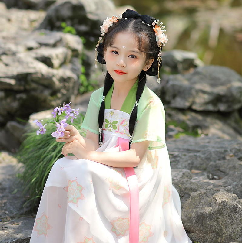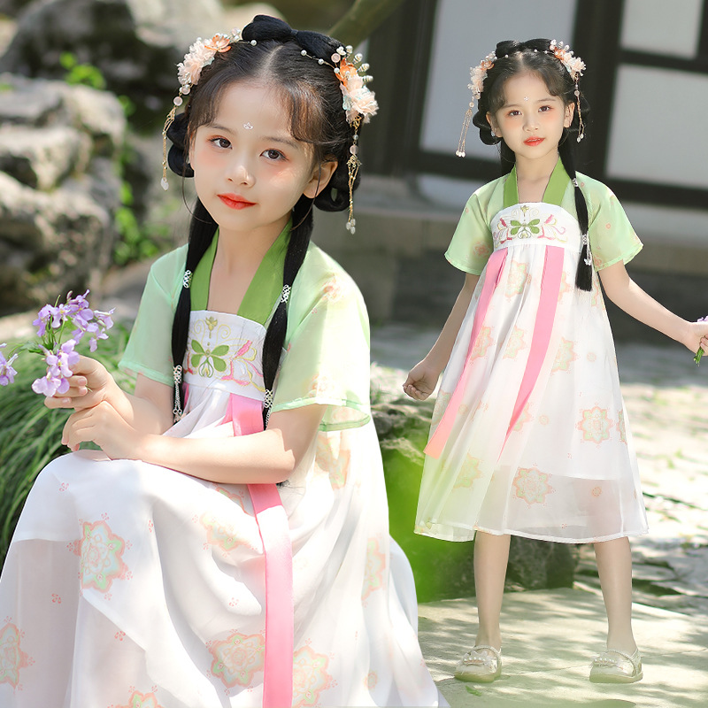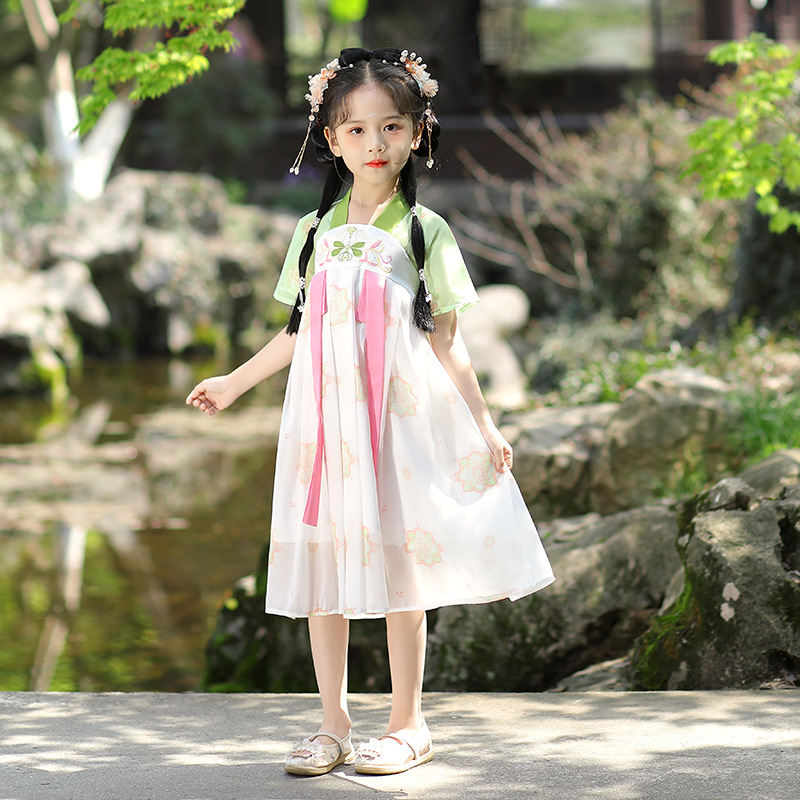 汉服女童连衣裙夏季薄款短袖唐装亲子唐装中国风超仙连衣裙