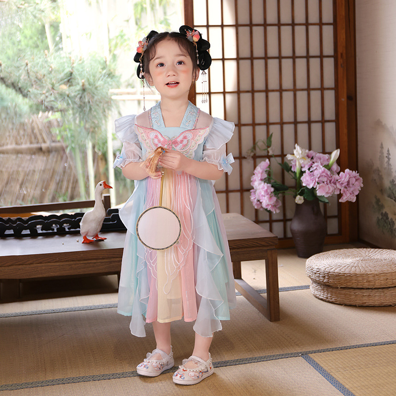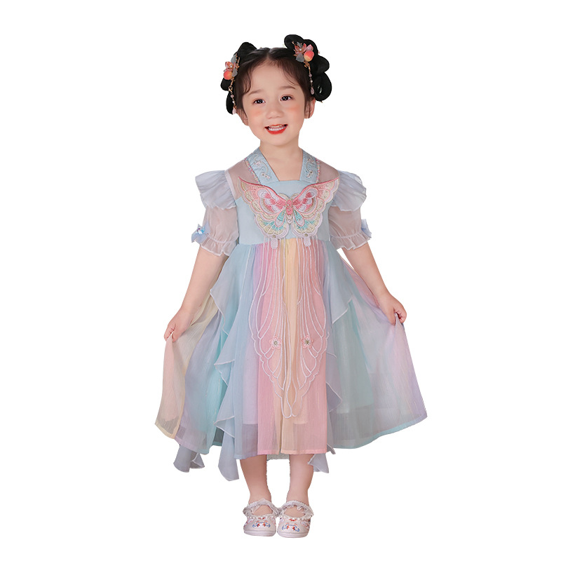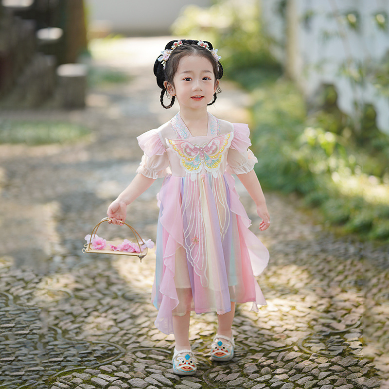 小女孩中国风蝴蝶彩虹汉服连衣裙夏季新品超仙时尚洋气六一表演服