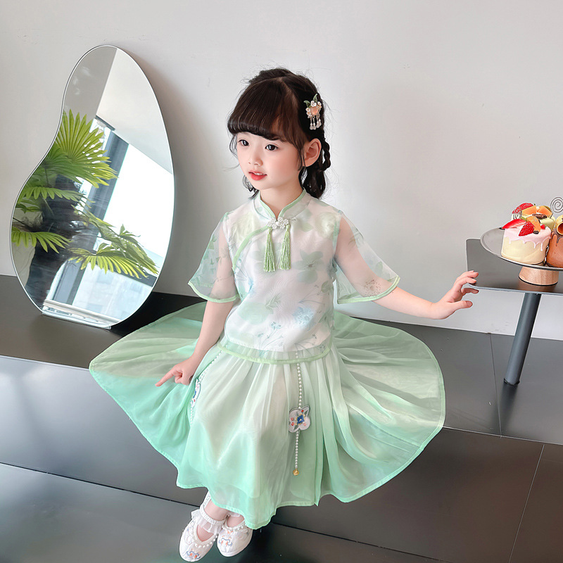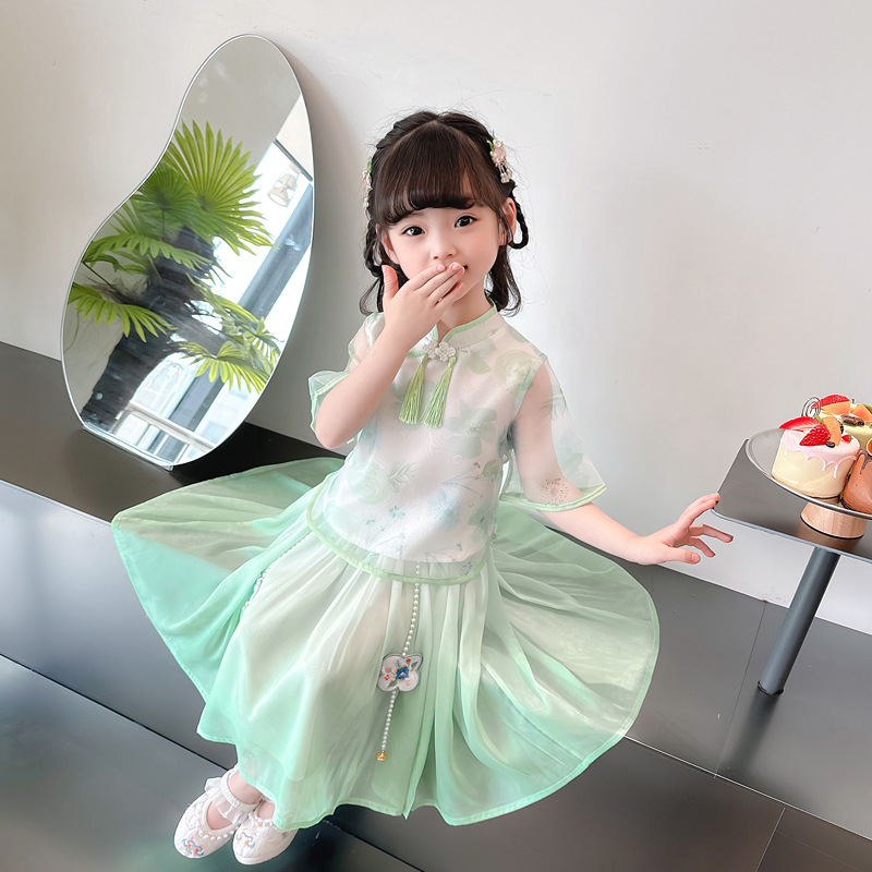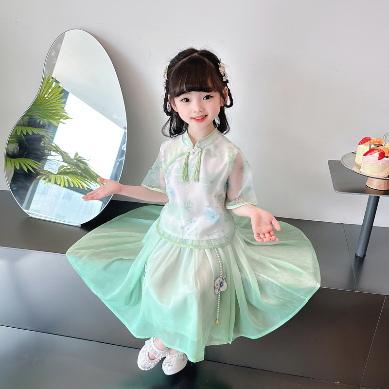 小女孩中国风套装古装汉服唐装六一表演服超仙甜美