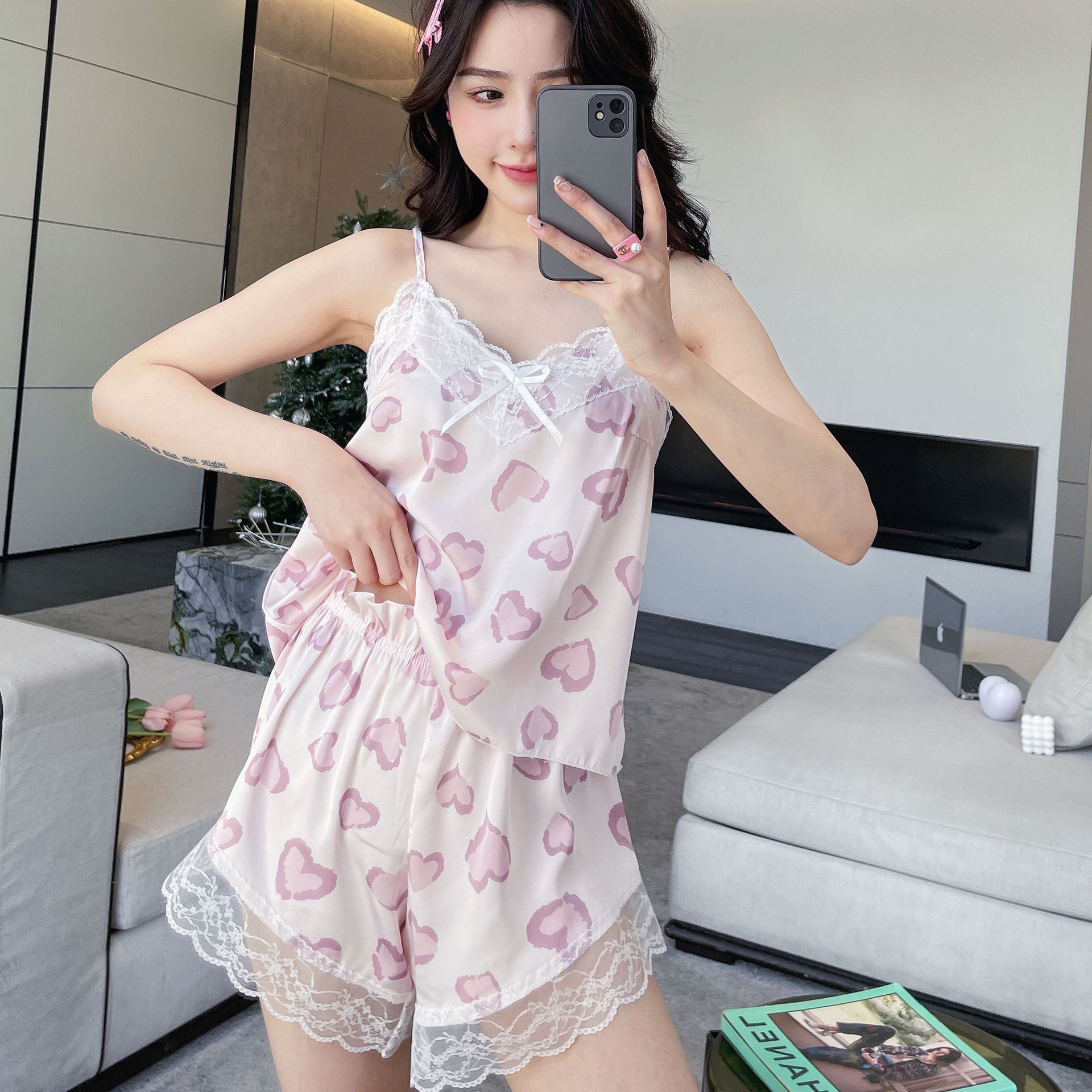 冰丝睡衣女夏季少女纯欲吊带短裤家居服套装睡衣女粉嫩性感家居服