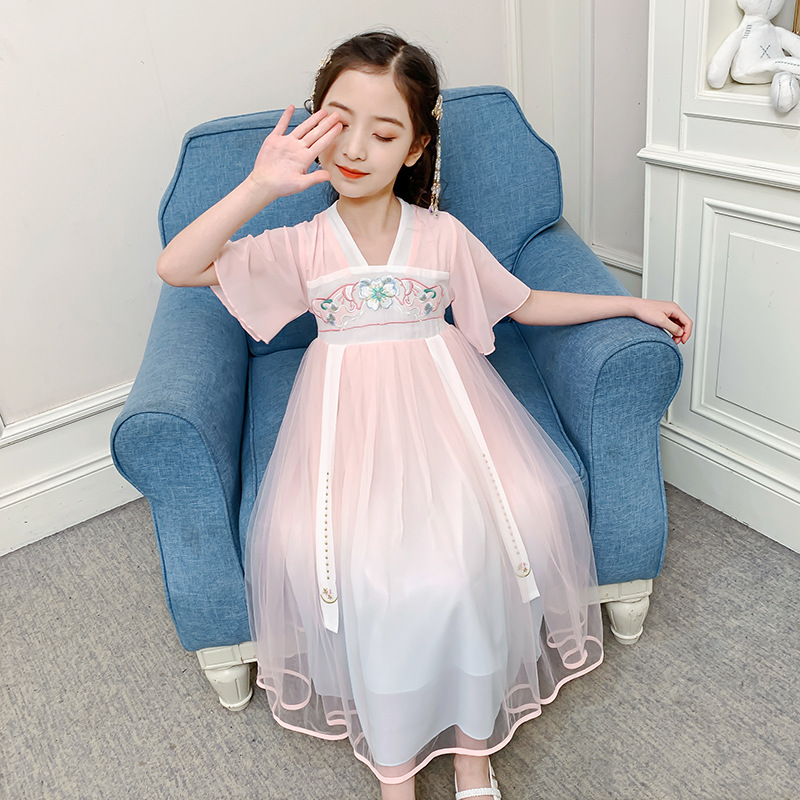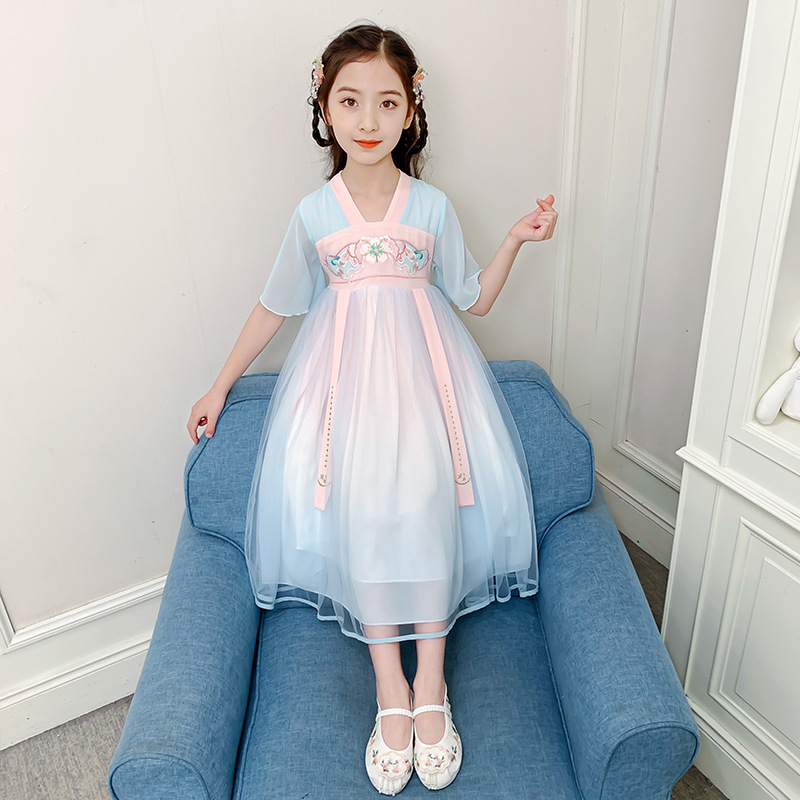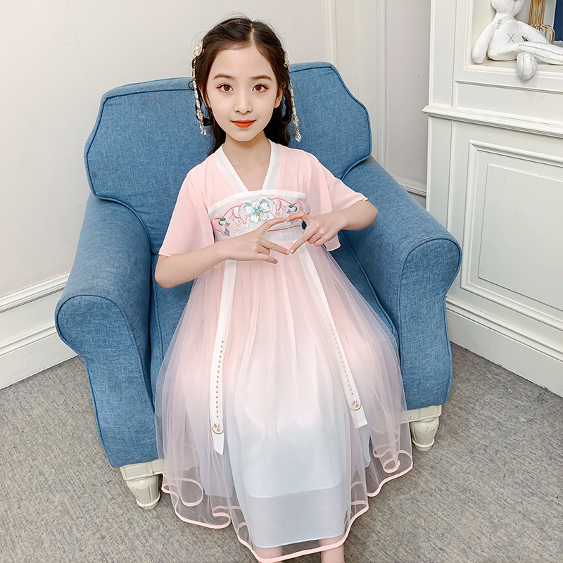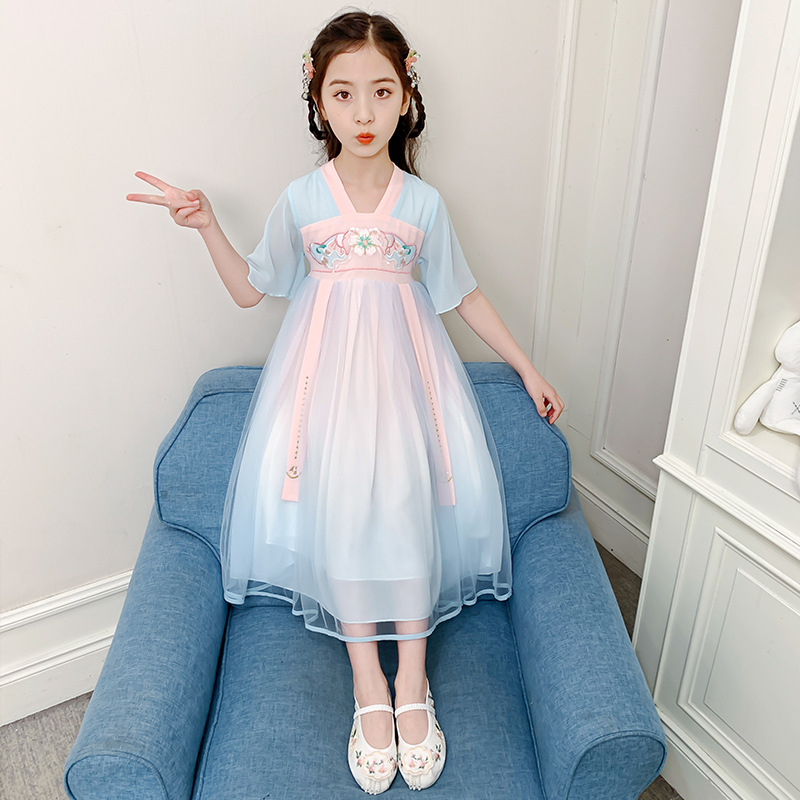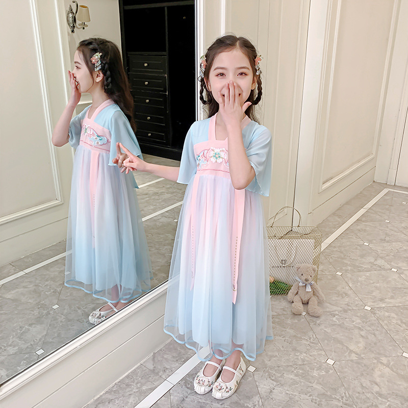 女童汉服连衣裙纱裙表演服夏季新品超仙甜美可爱唐装