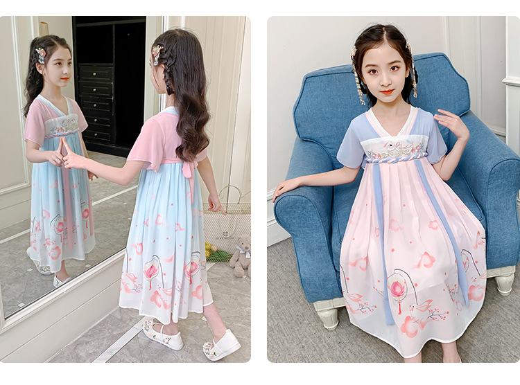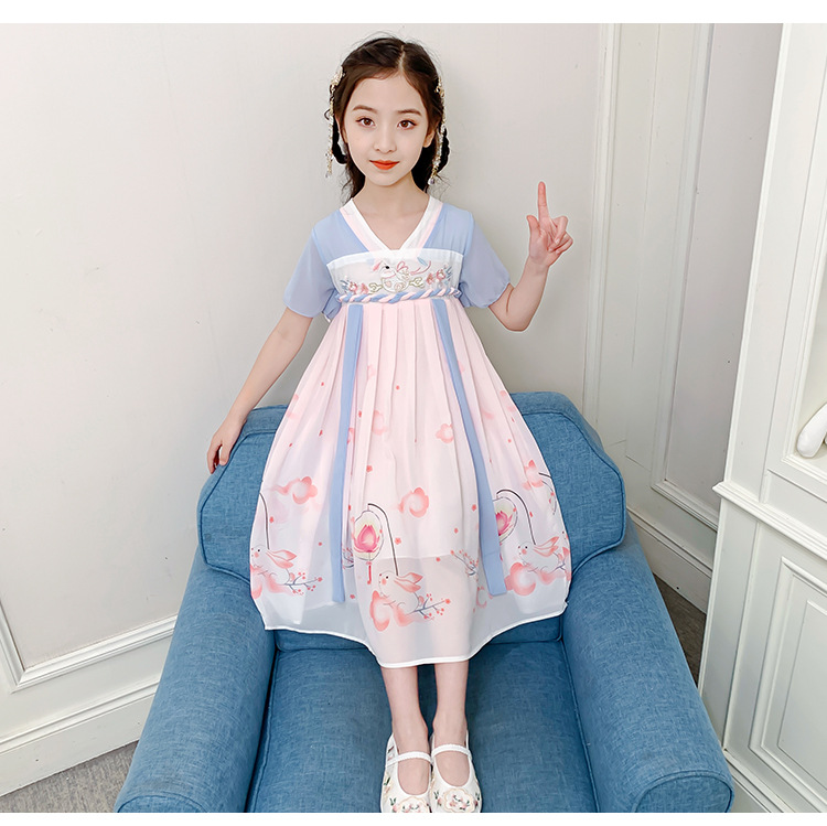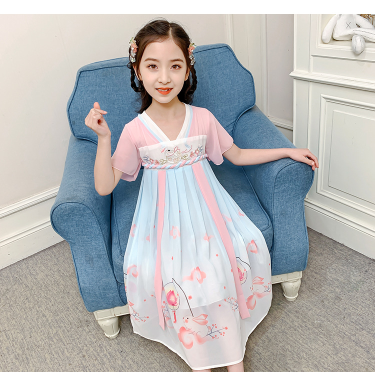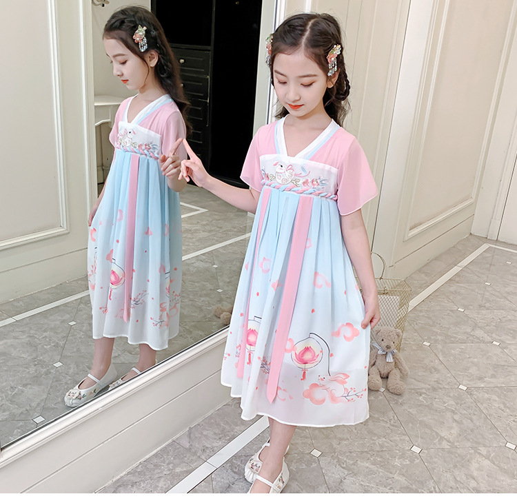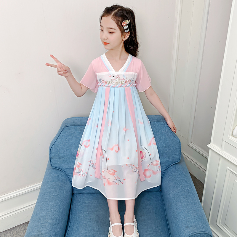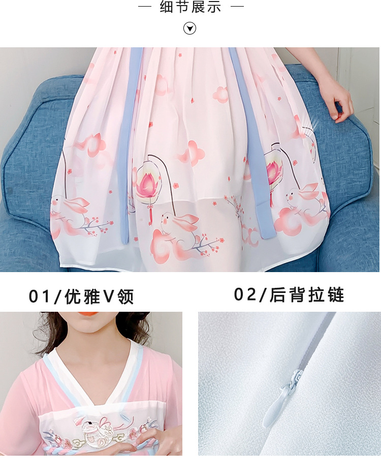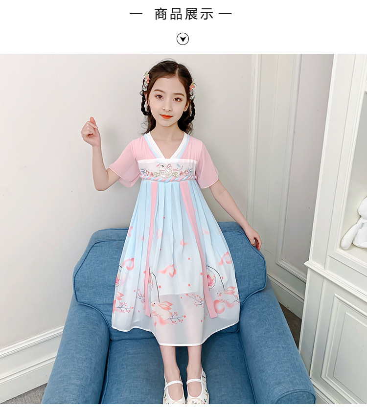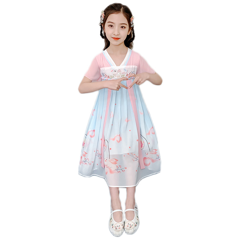 女童连衣裙夏季汉服小兔绣花汉服裙夏季新品六一表演服