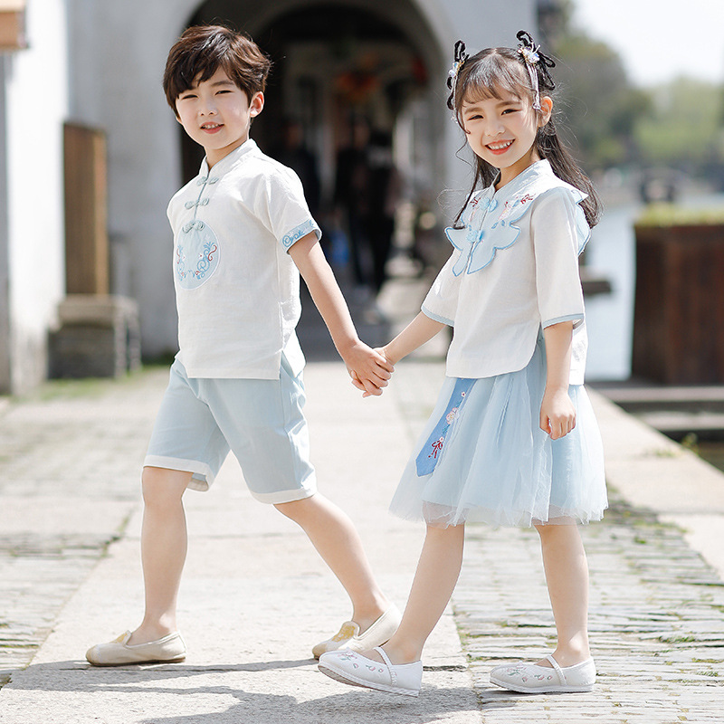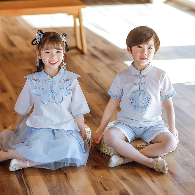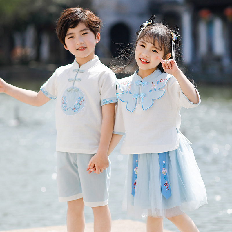 男女童幼儿园服夏装汉服六一演表演服中国风男女童新款唐装