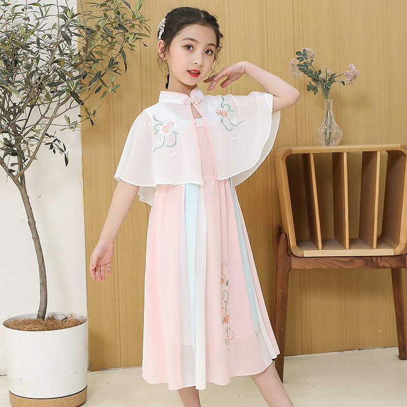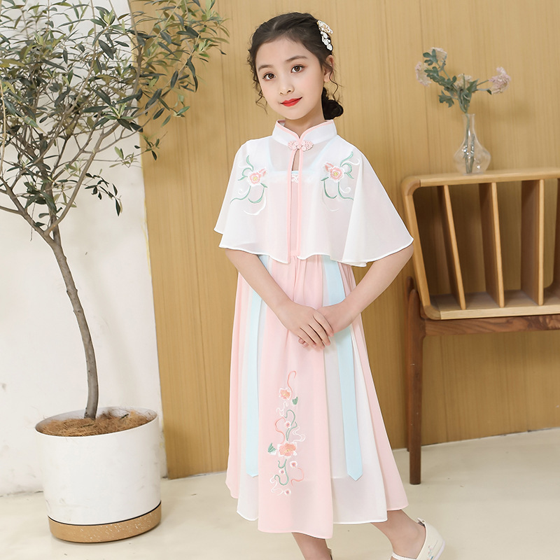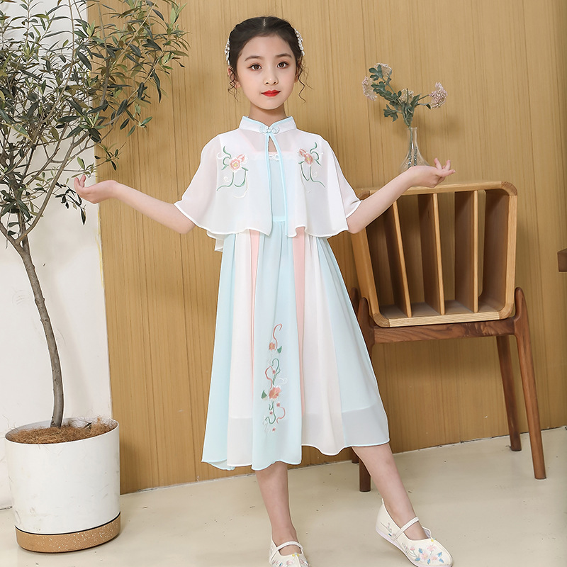 女童时尚披肩唐装夏季新品女中大童甜美可爱套装