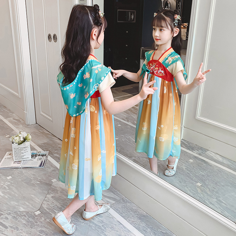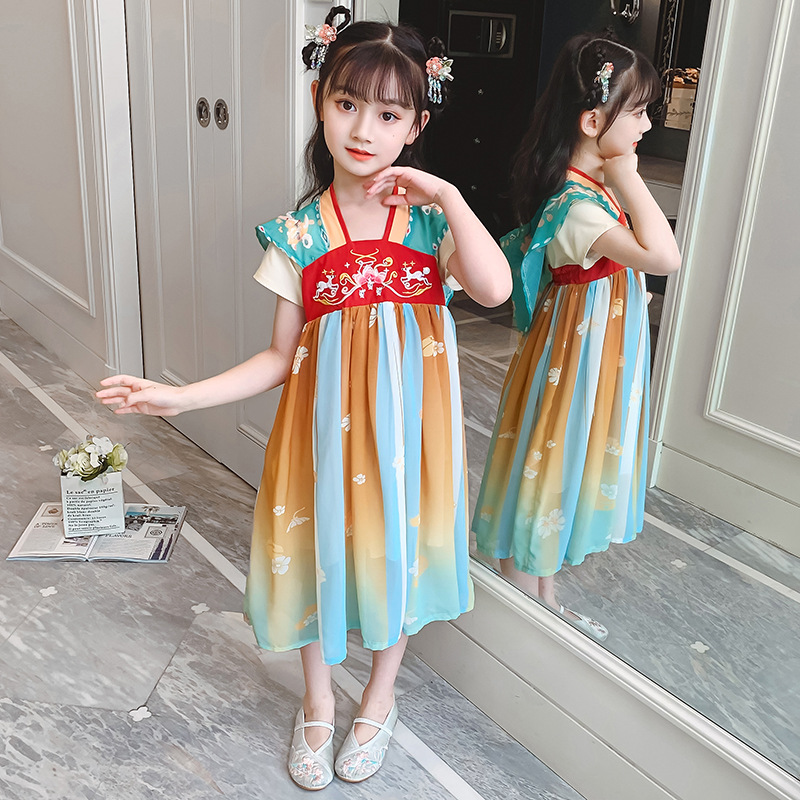 女童中国风改良连衣裙夏季新品小女孩古风超仙连衣裙
