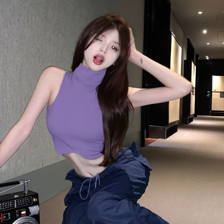 木耳边细吊带辣妹抹胸娃娃衫女夏季新款度假风百搭茶系穿搭上衣女