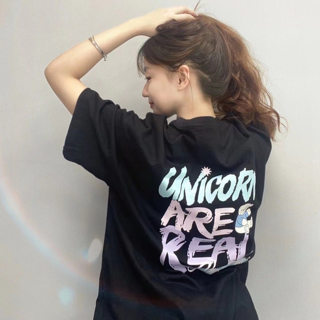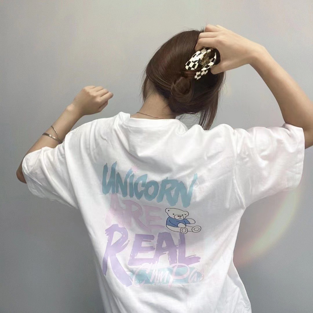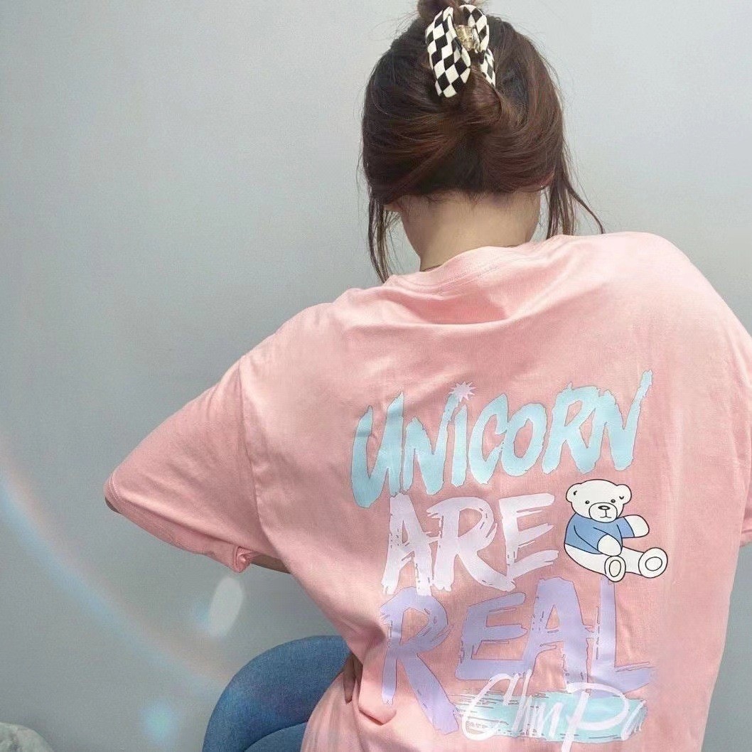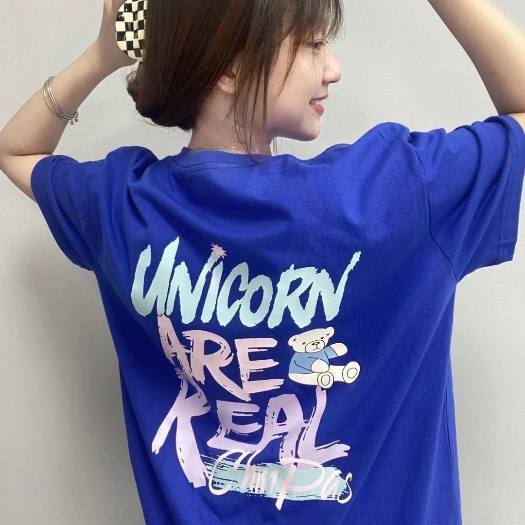 夏季新款ins潮牌青少年印花上衣男女同款T恤200克精梳棉t恤女短袖