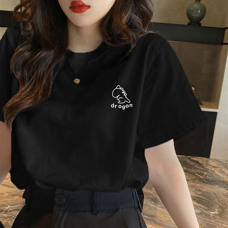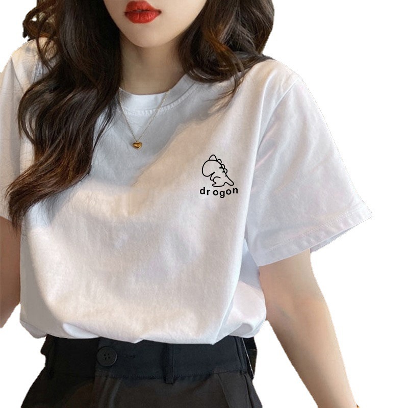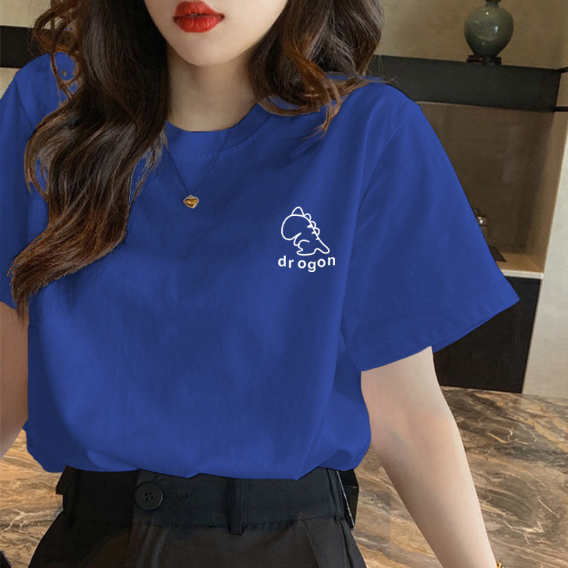 年夏季新款蓝色短袖T恤女韩版宽松休闲百搭卡通印花正肩上衣