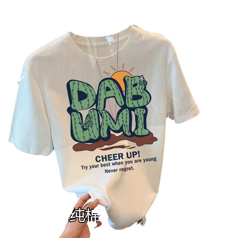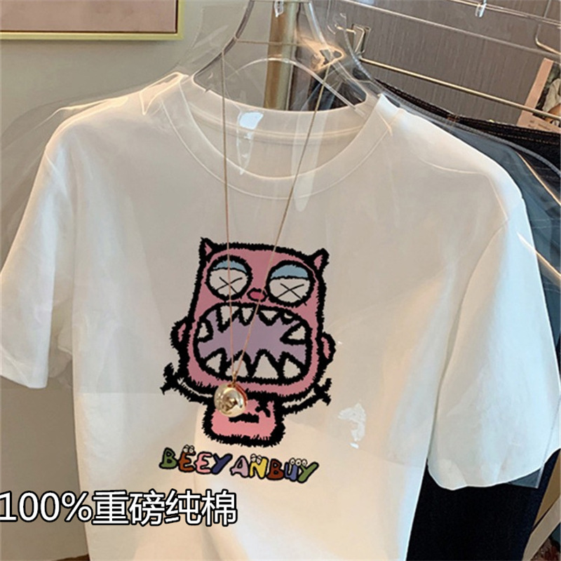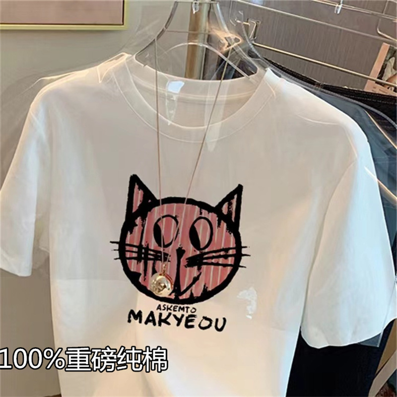 纯棉重磅短袖t恤女夏季潮牌美式复古设计感小众oversize半袖上衣
