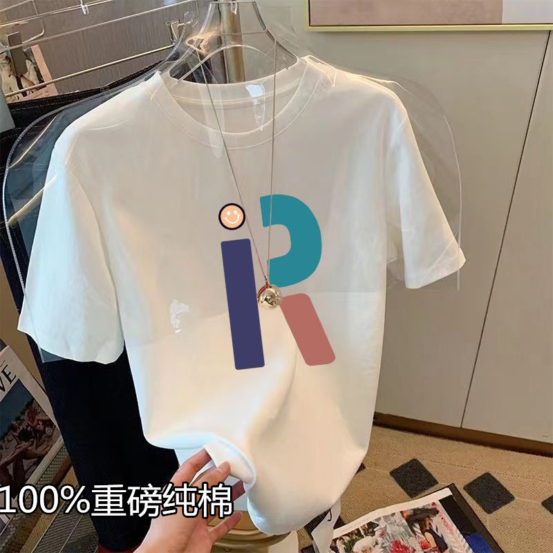新款正肩重磅纯棉短袖T恤女时尚百搭显瘦白色上衣打底衫男夏