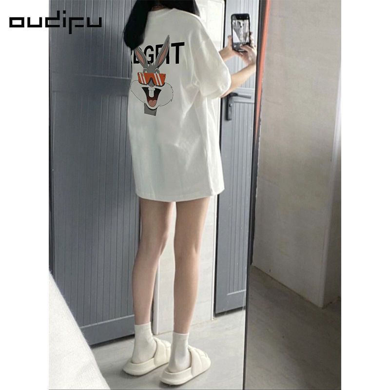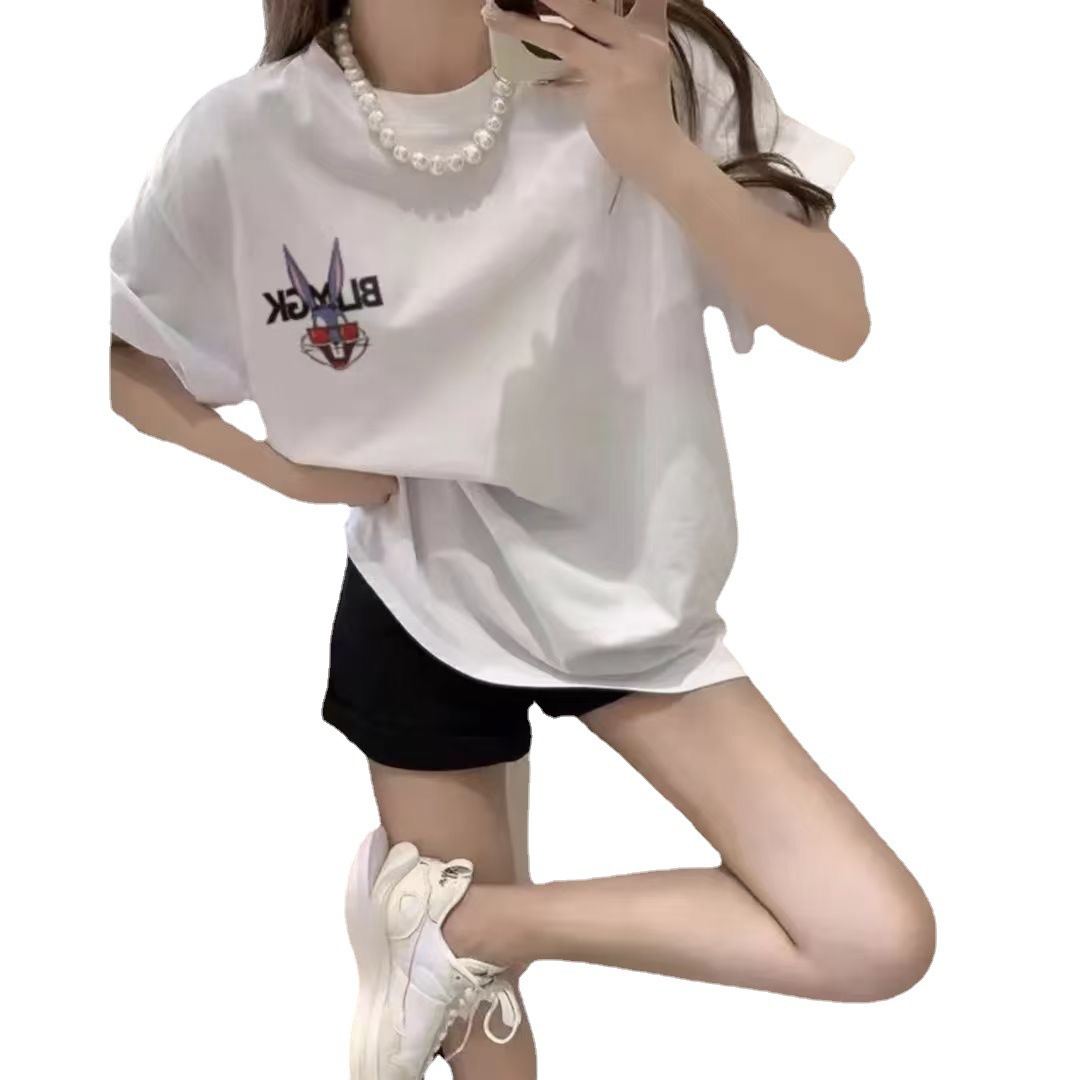 韩版法式兔子印花休闲短袖t恤女夏季高街国潮甜美宽松上衣服
