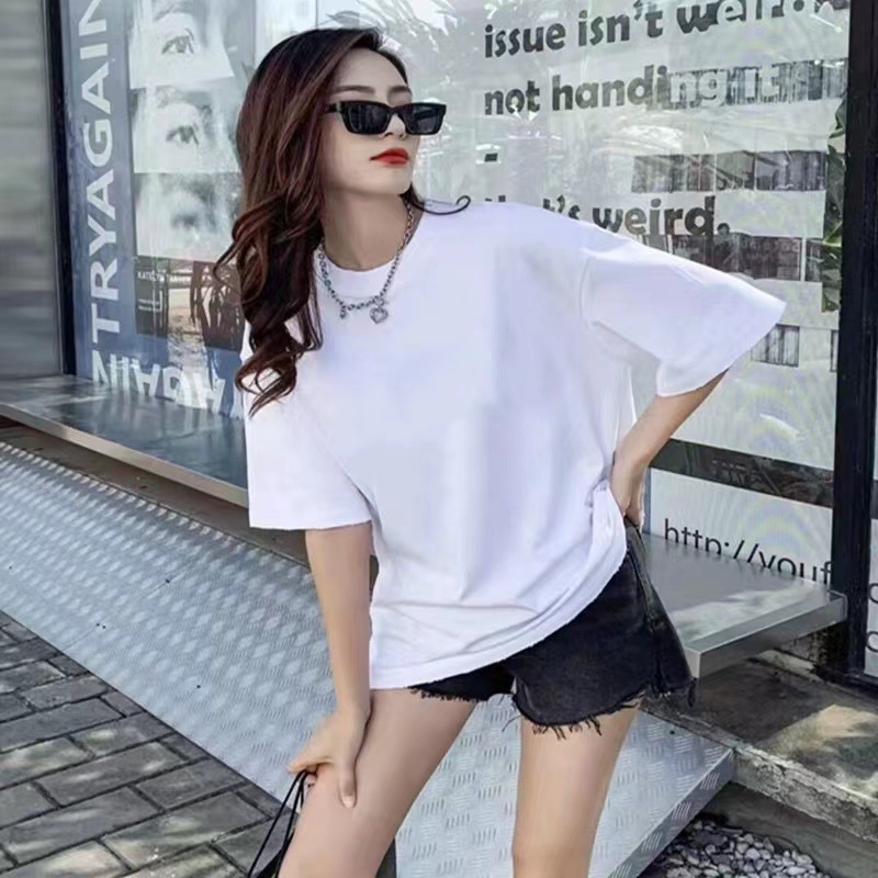 宝蓝色正肩t恤女短袖夏装新款体恤纯棉宽松大码半袖上衣ins潮
