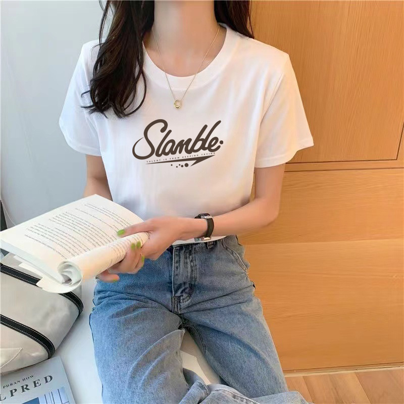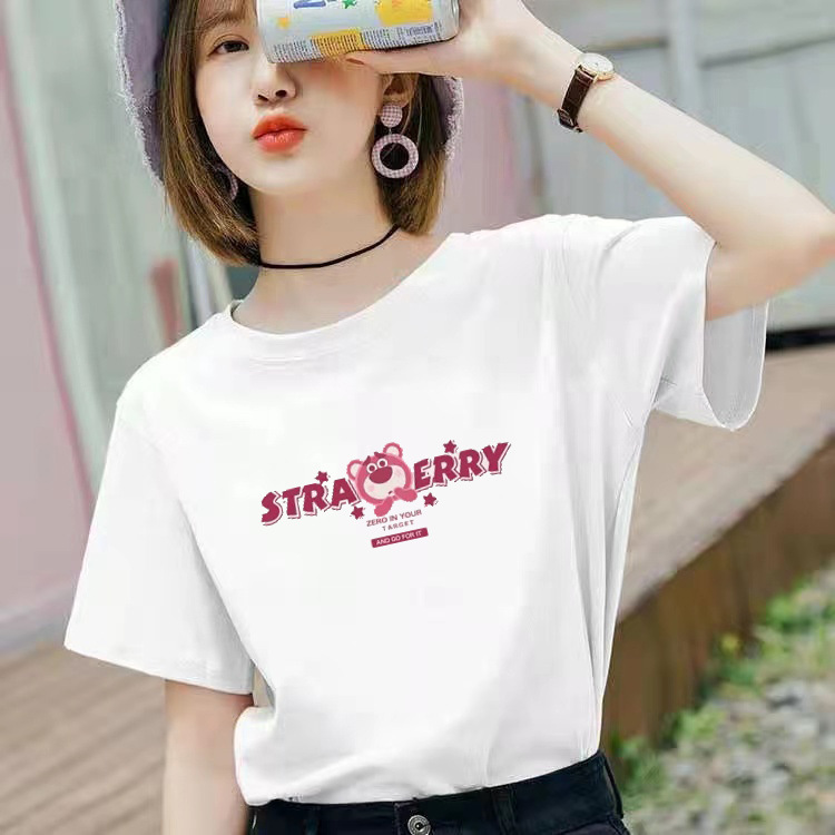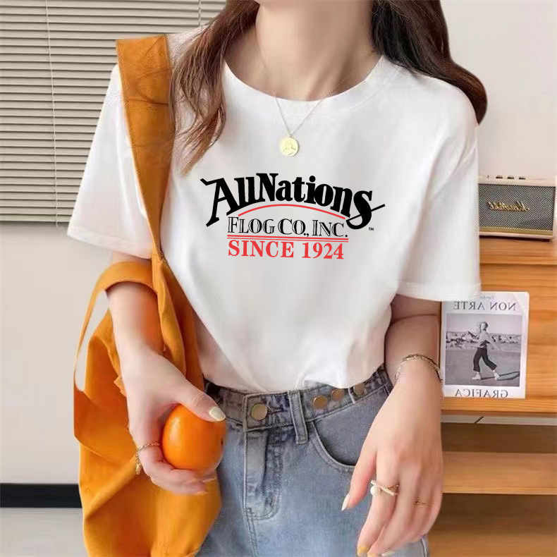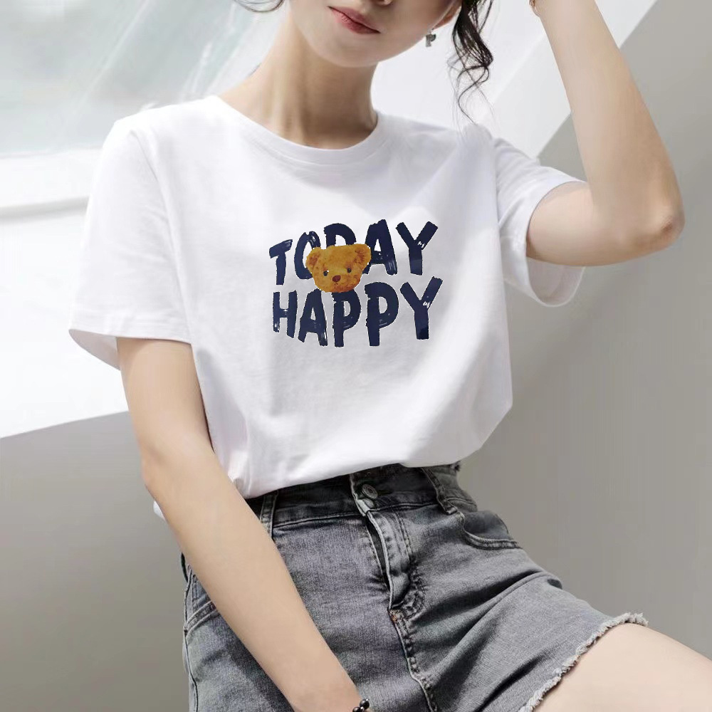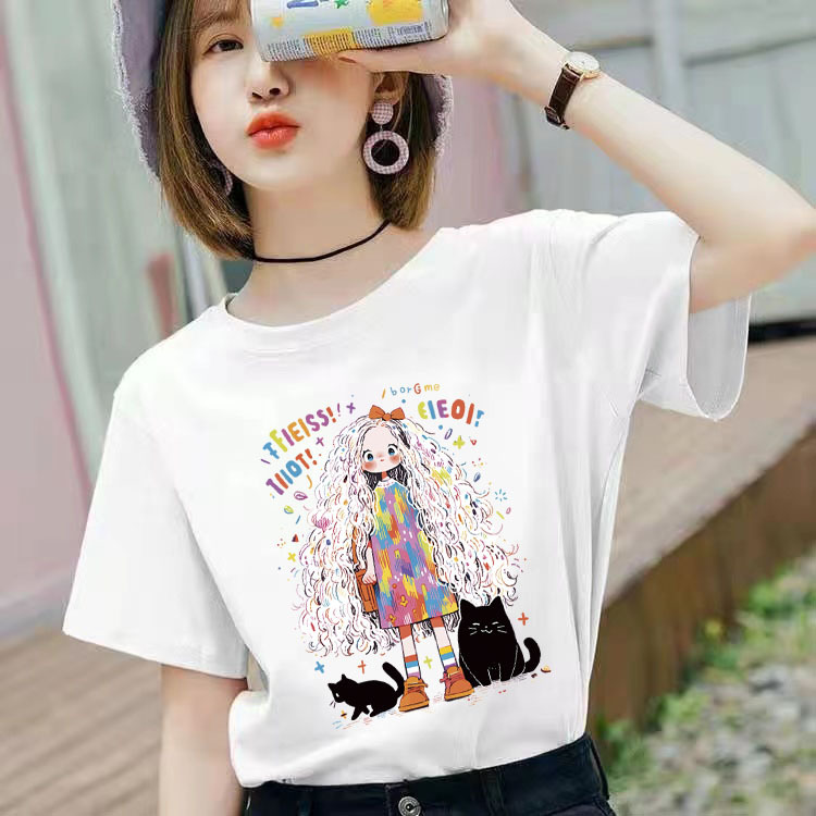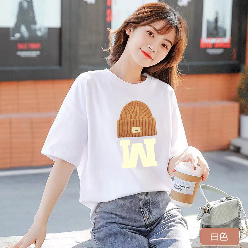 百搭纯棉t恤短袖女印花休闲学生半袖男女同款白色上衣情侣T恤