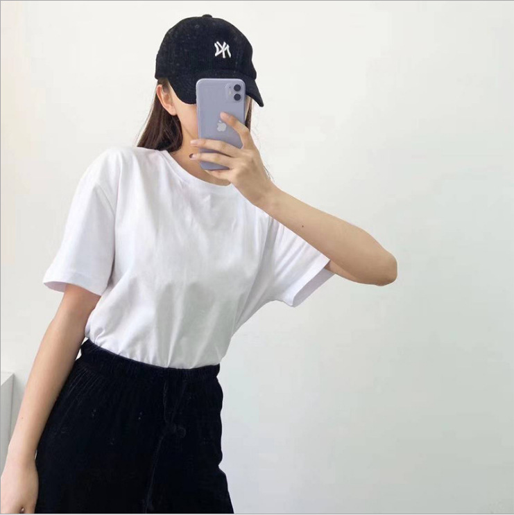 重磅纯棉白色正肩内搭短袖t恤男女上衣宽松打底衫夏季短袖女