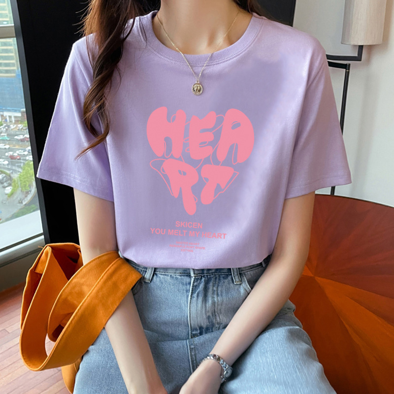 纯棉短袖T恤女士正肩春夏季新款半袖体恤上衣内搭宽松情侣装