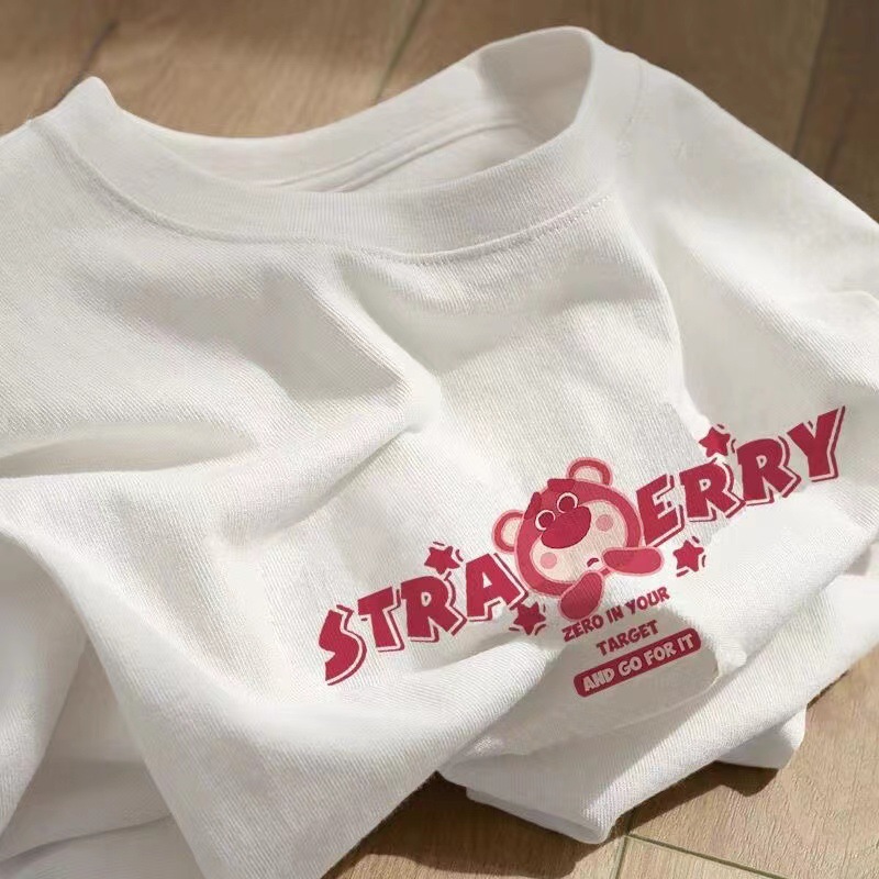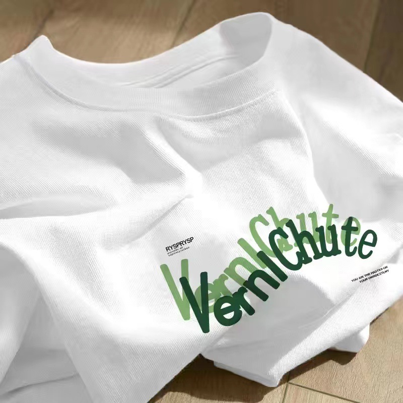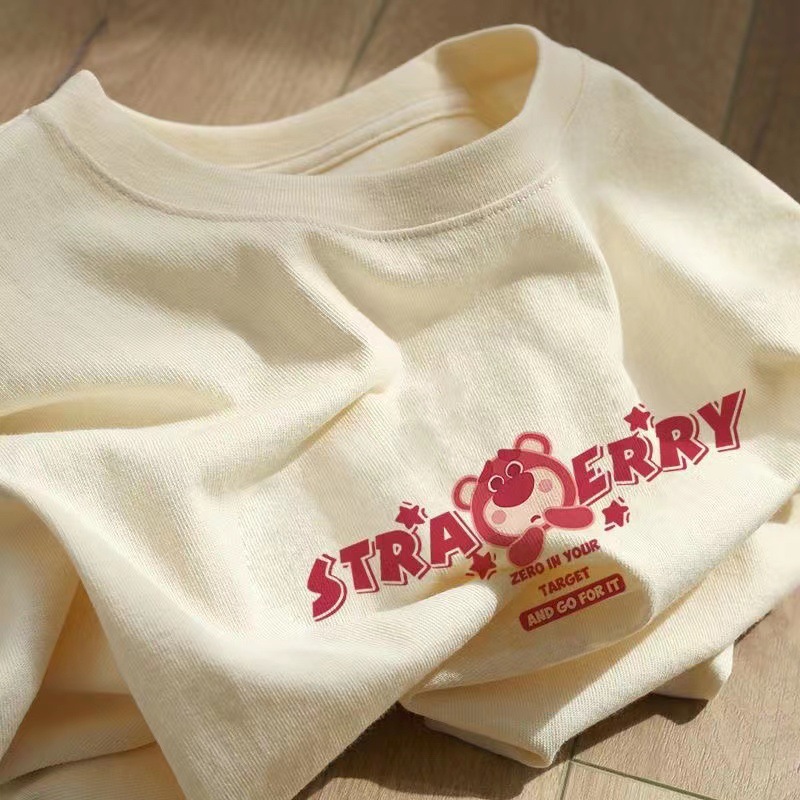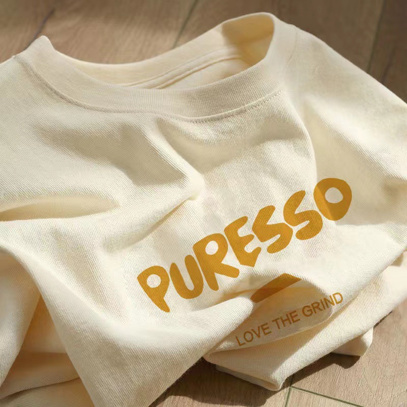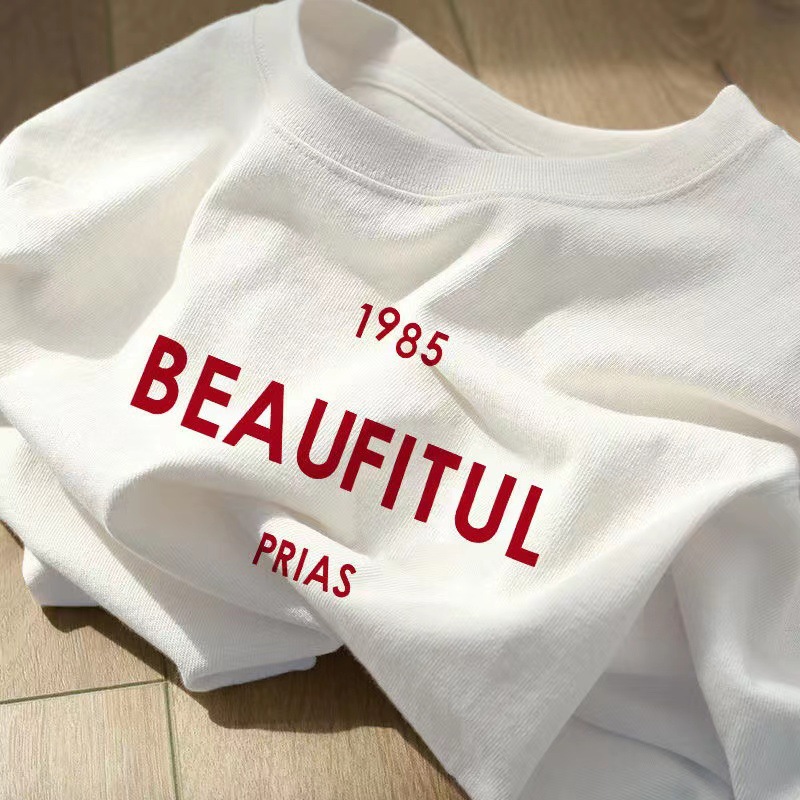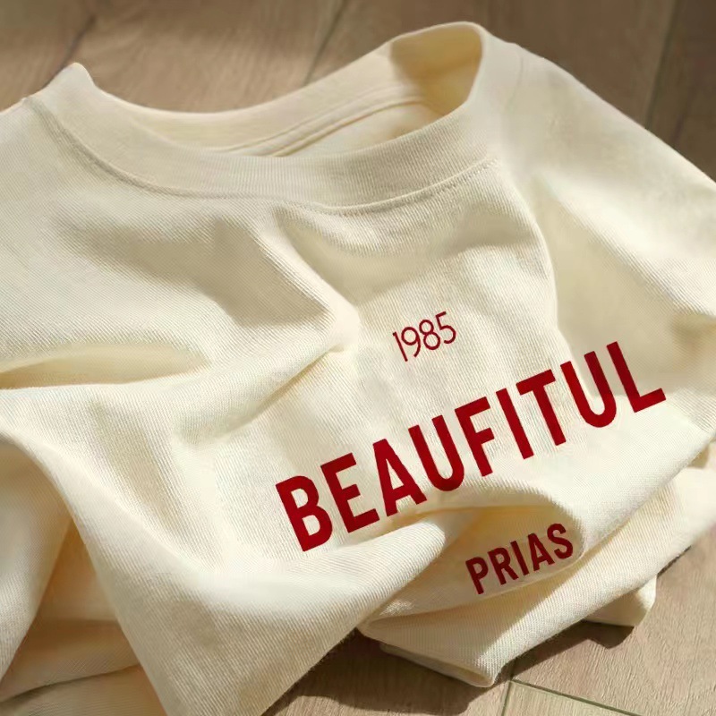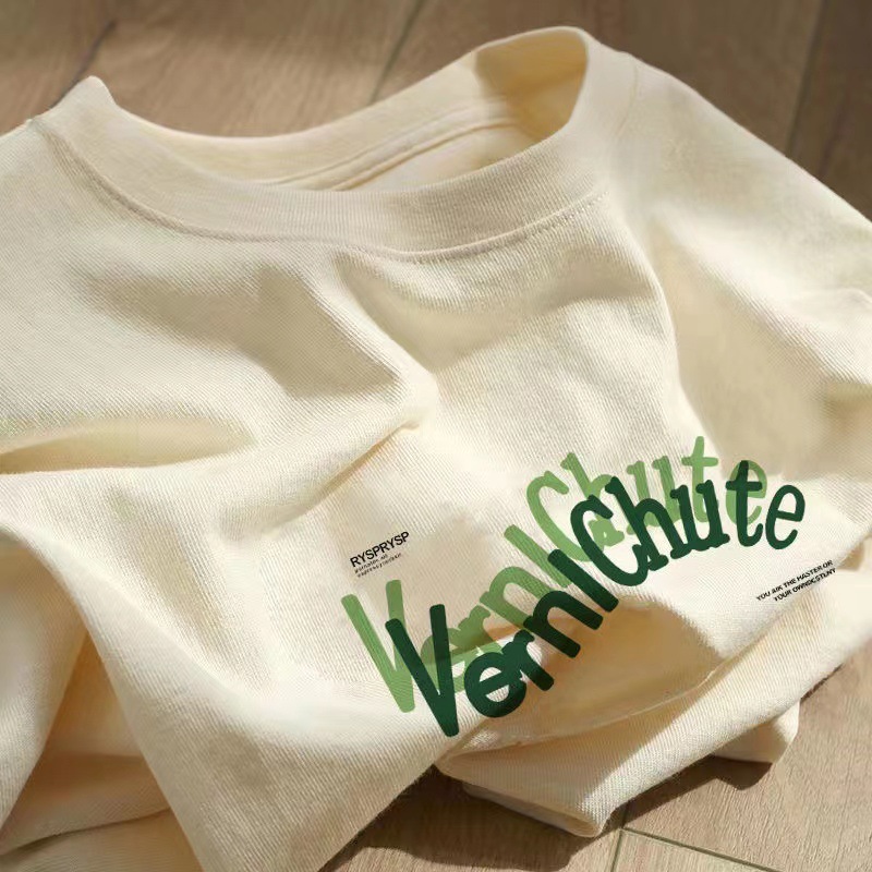 夏季新款杏色纯棉短袖T恤女宽松美式字母印花上衣ins情侣半袖