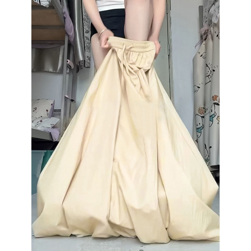 卡其色花苞裙女夏2025新款高腰显瘦冰丝灯笼裙休闲百搭蓬蓬半身裙
