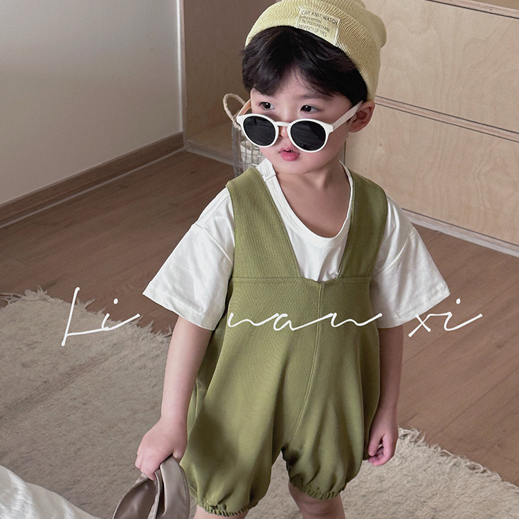 24年夏新品儿童背带裤男女童连体裤宝宝出街凹造型连体中裤