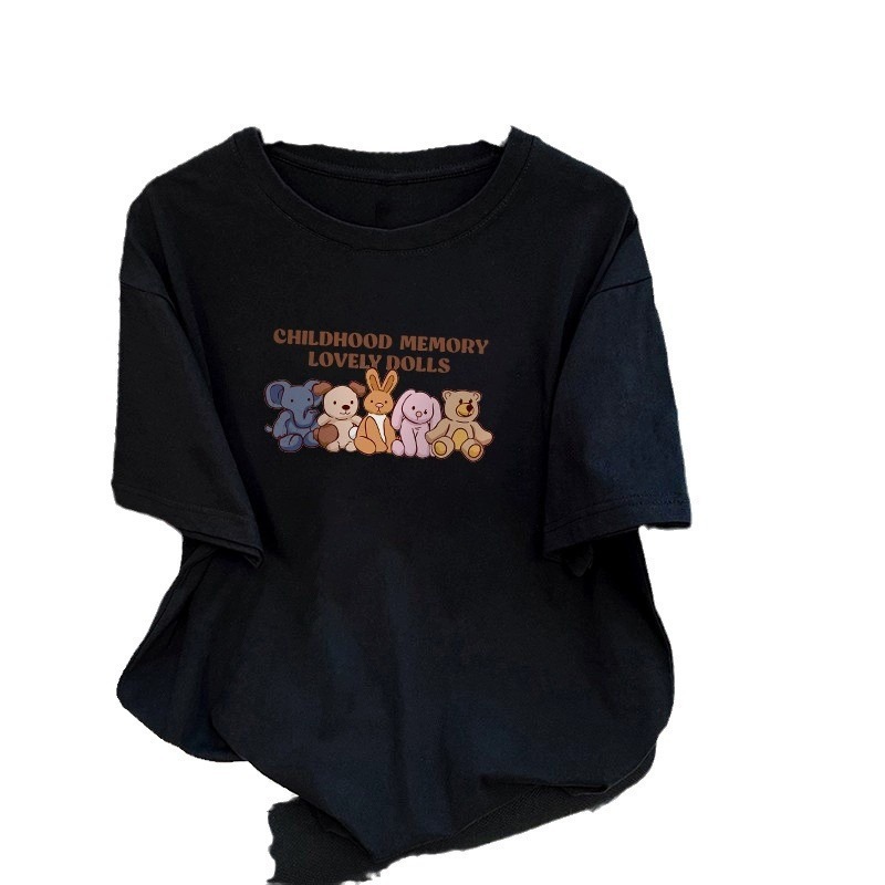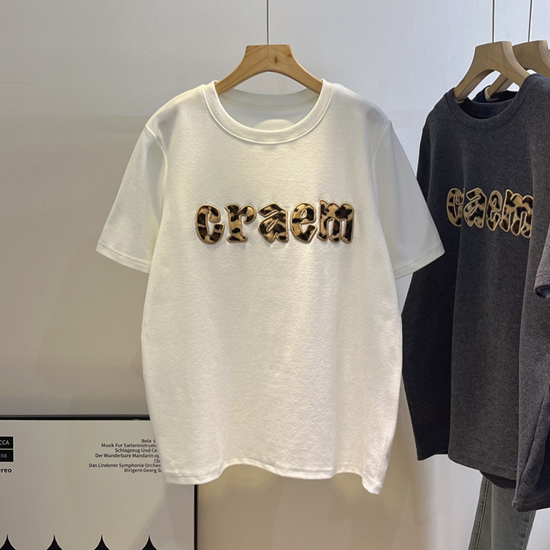 磨毛豹纹字母刺绣短袖T恤女韩国爆款时尚基础款圆领打底上衣
