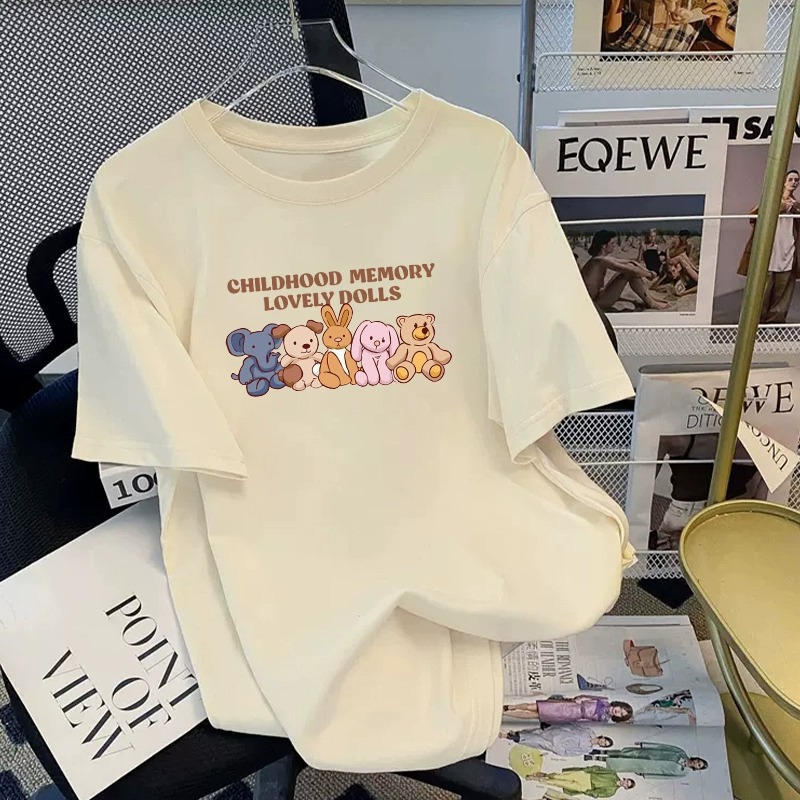 夏季新款正肩纯棉短袖T恤女休闲时尚减龄显瘦白色体恤上衣潮