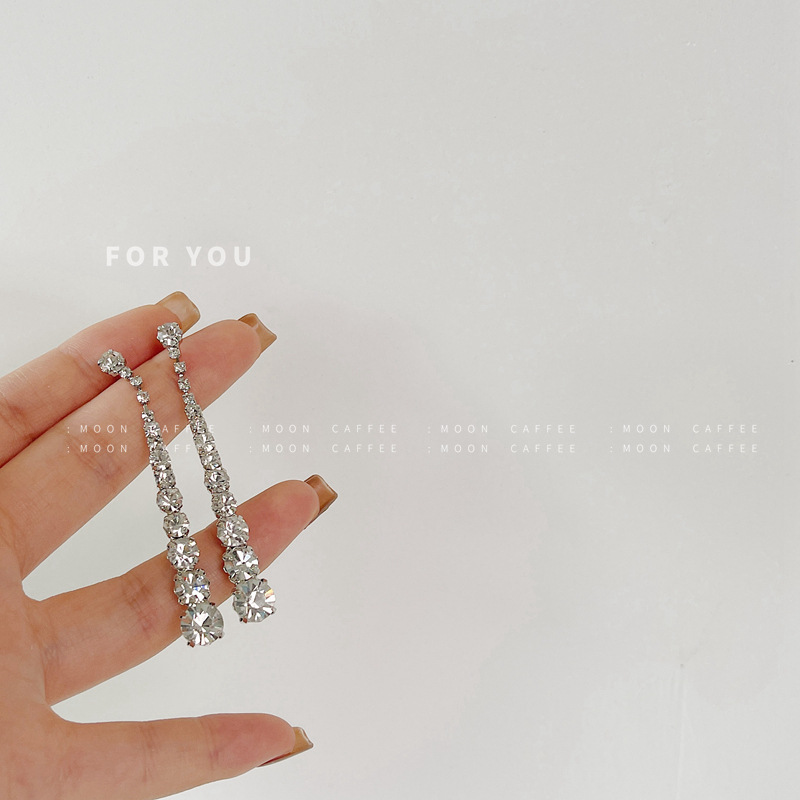 925银针捷克钻简约欧美长款流苏耳环气质港味ins冷淡风耳坠耳饰潮
