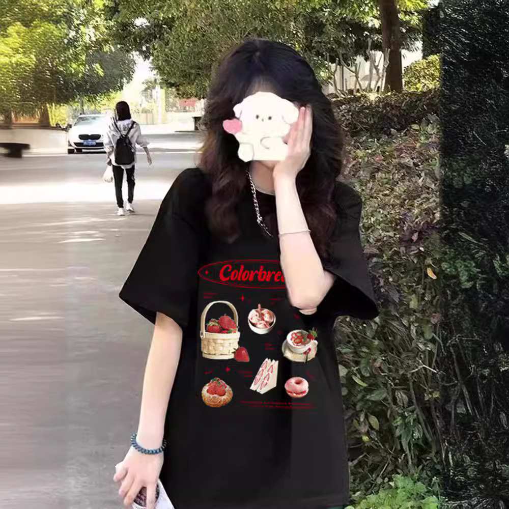 纯棉短袖T恤女士正肩春夏季新款半袖体恤上衣内搭宽松情侣装