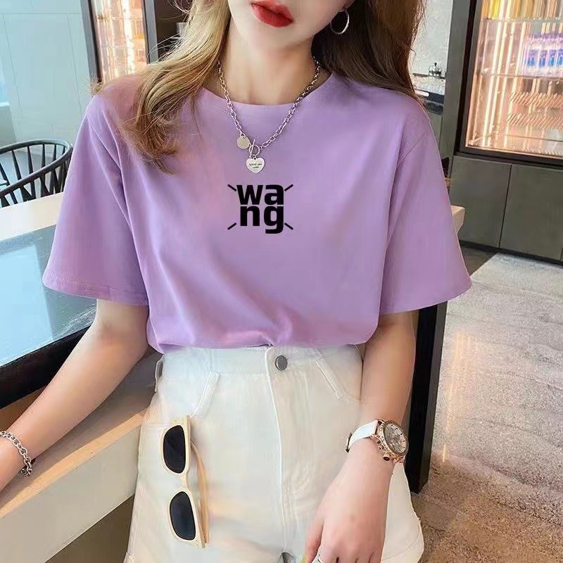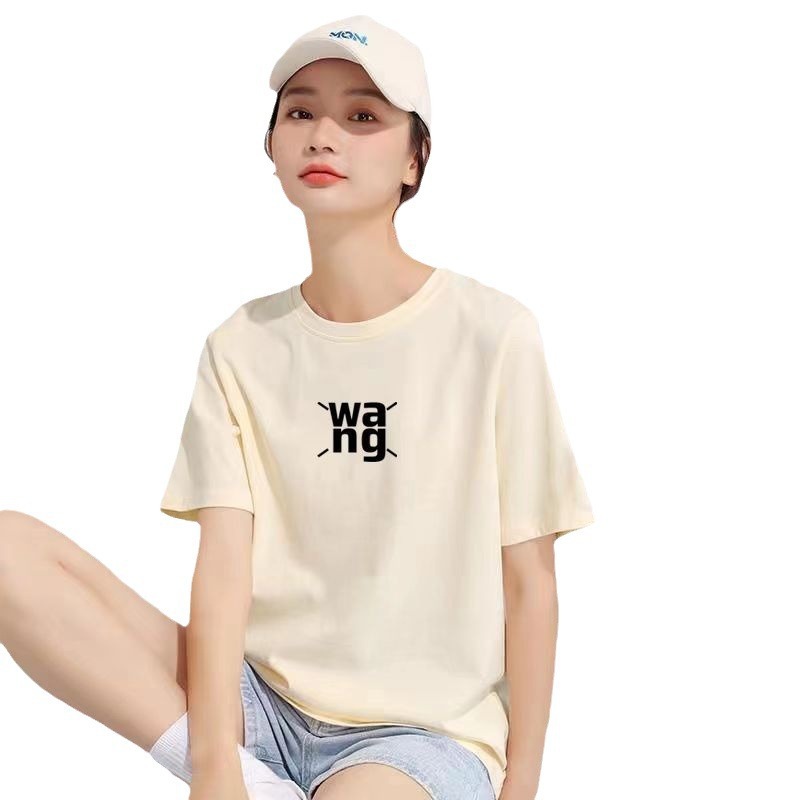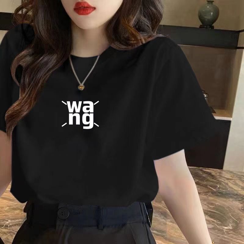 正肩短袖T恤女夏季新款时尚纯棉百搭字母宽松显瘦圆领半袖上衣潮
