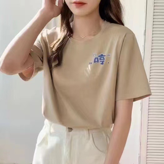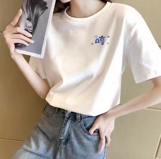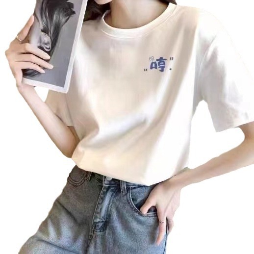 新款正肩纯棉短袖T恤女宽松ins时尚百搭洋气减龄显瘦上衣夏季