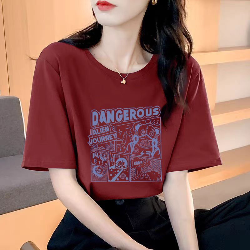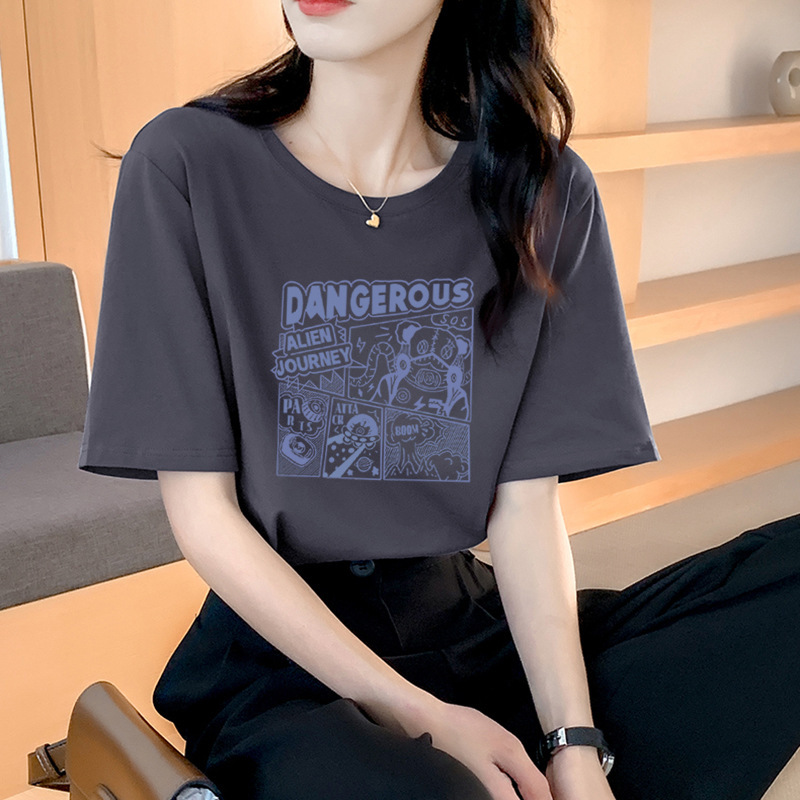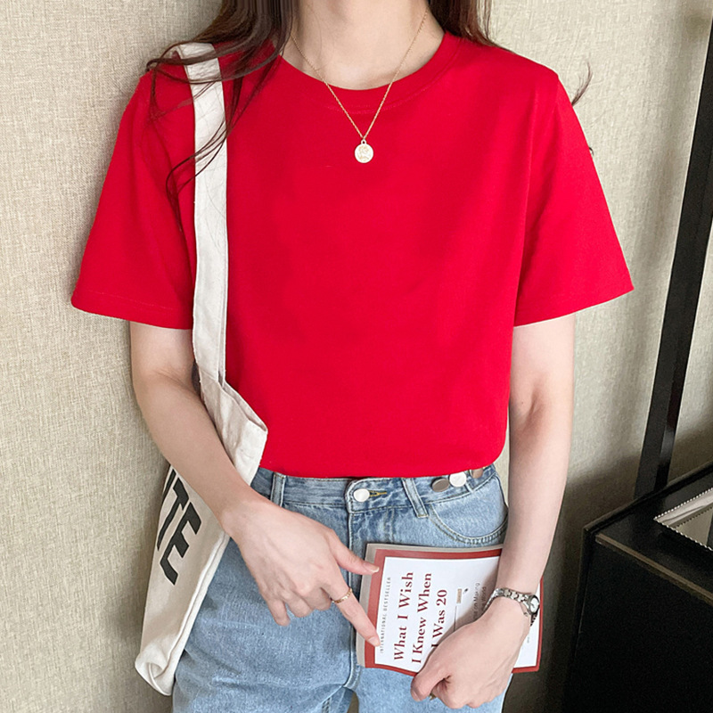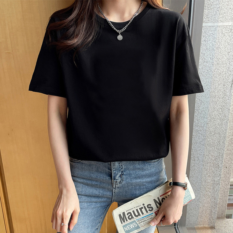 纯棉短袖T恤女士正肩春夏季新款半袖体恤上衣内搭宽松情侣装