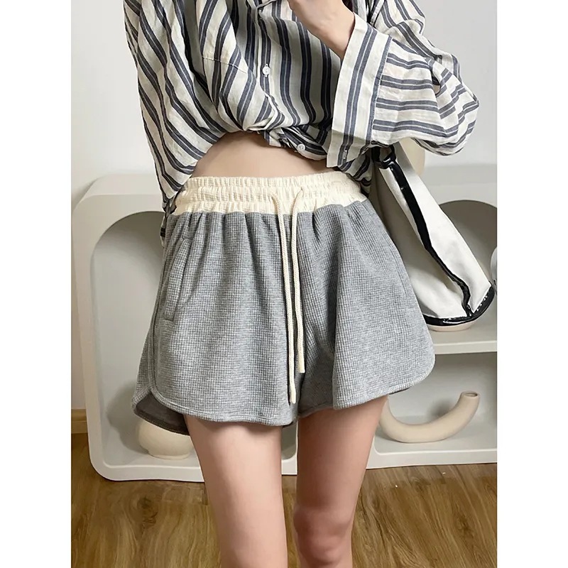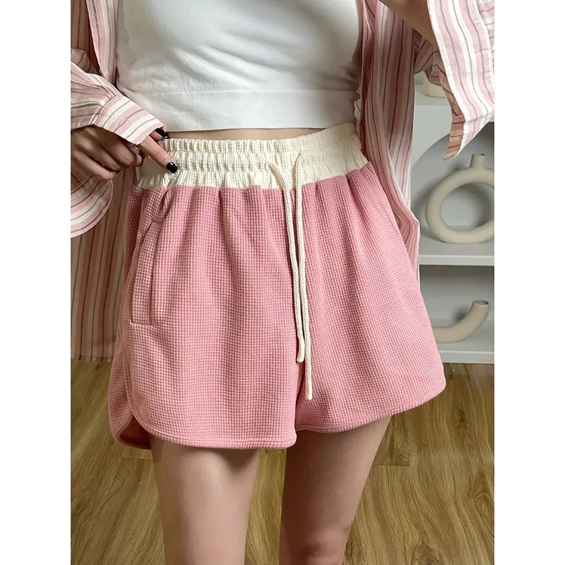 松紧腰外穿运动短裤女夏季高腰热裤居家百搭休闲ins撞色阔腿裤