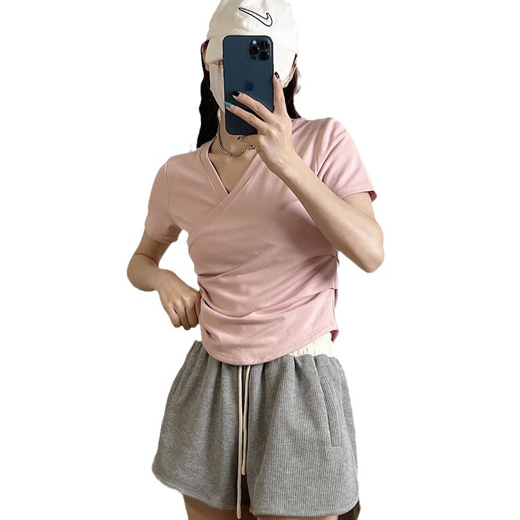 夏季短袖T恤女设计感小众甜美减龄法式泡泡袖纯棉宽松体桖上衣服