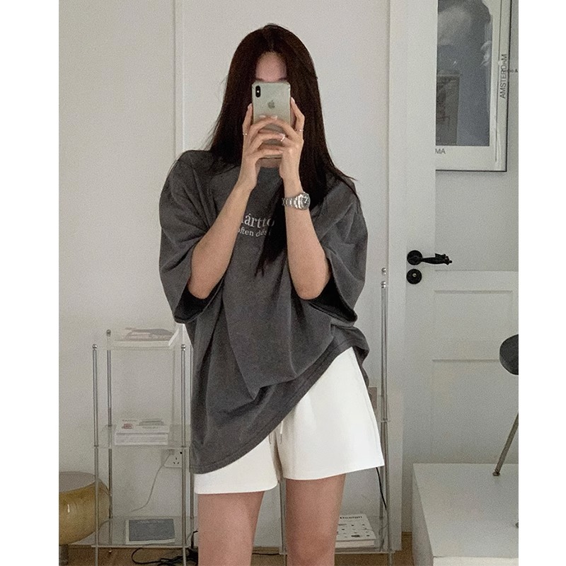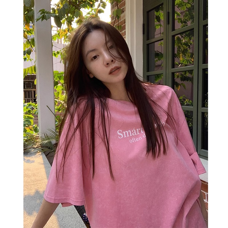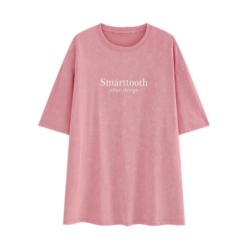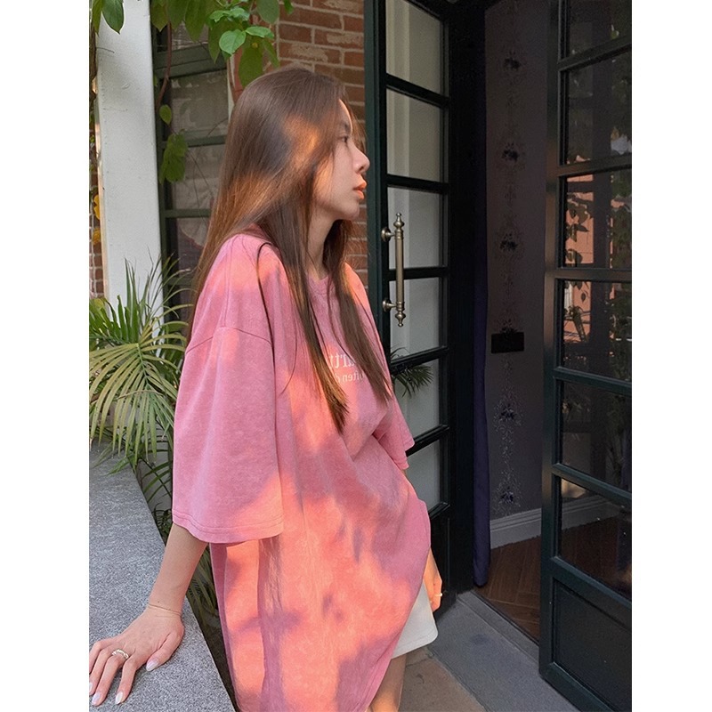 粉色纯棉短袖t恤女夏季新款高级感打底衫休闲宽松中长款上衣体恤