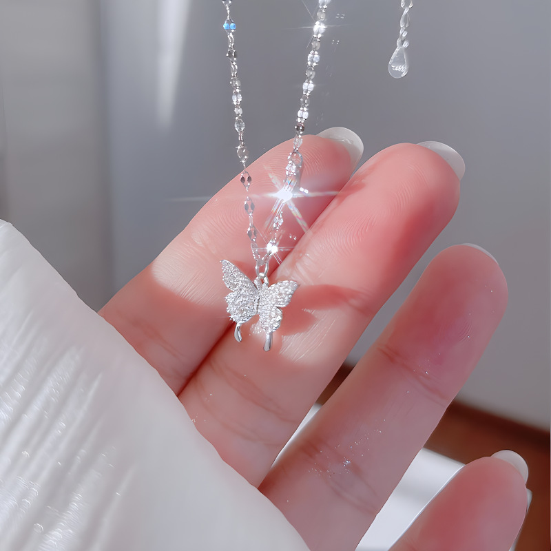 银贝925银蝴蝶项链女高级感蝴蝶结百搭颈链情人节礼物