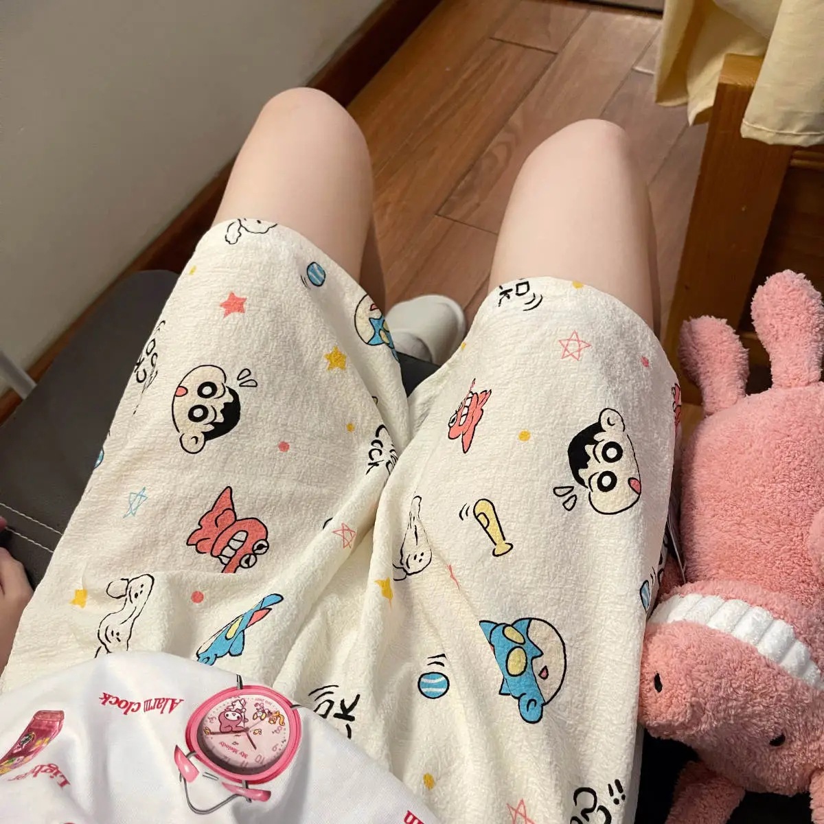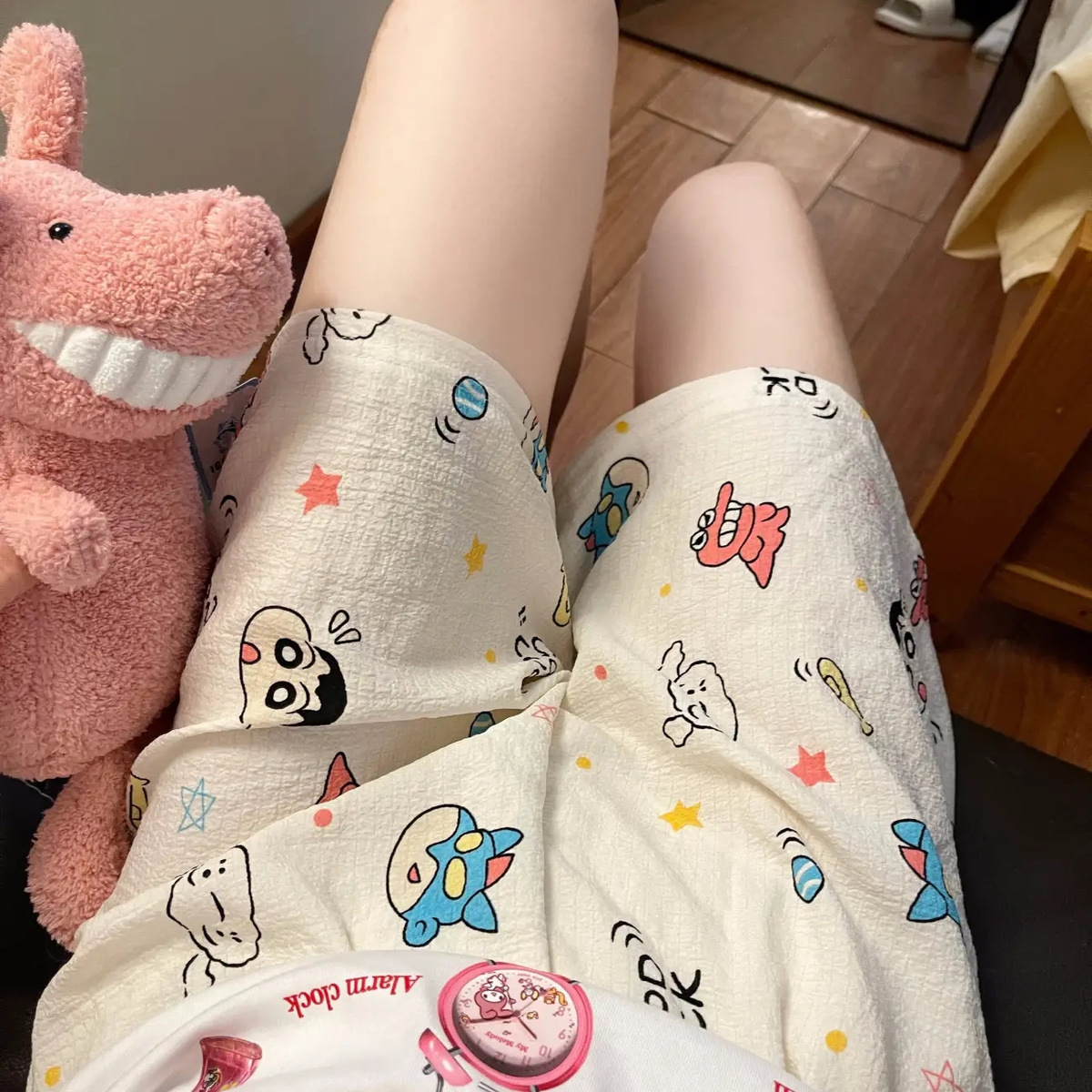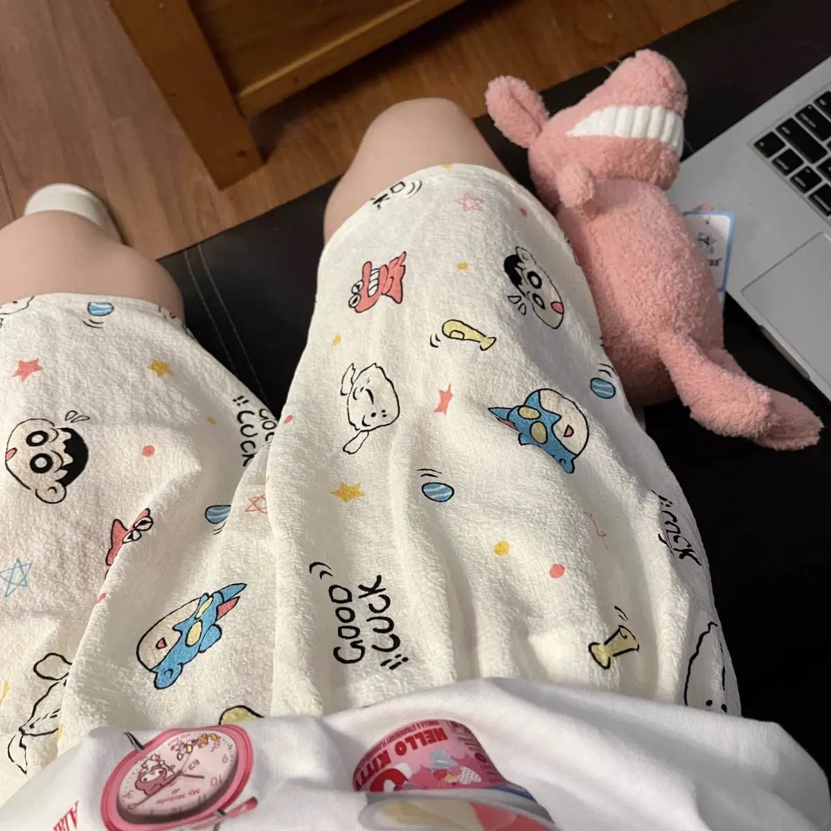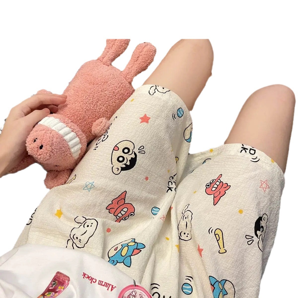 婴儿棉感睡裤短款夏季防蚊裤宽松薄款家居裤网红卡通休闲遛弯裤子