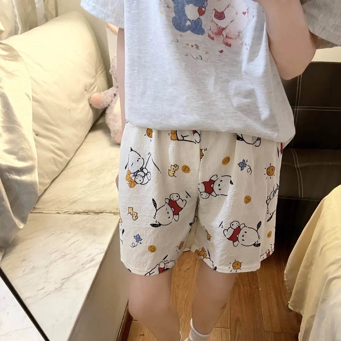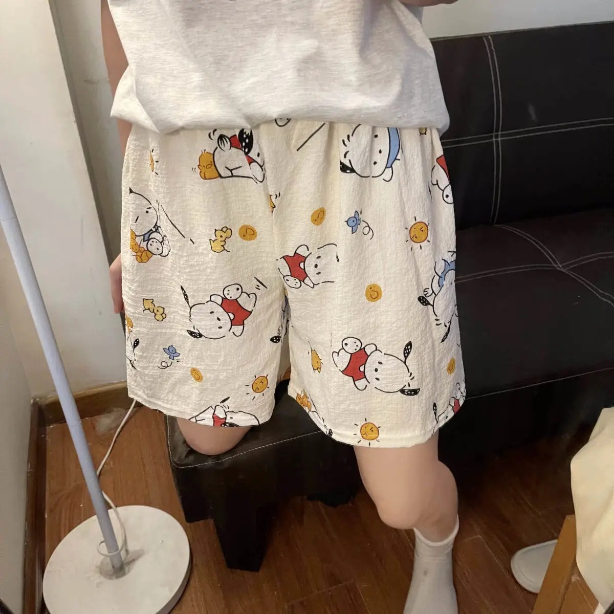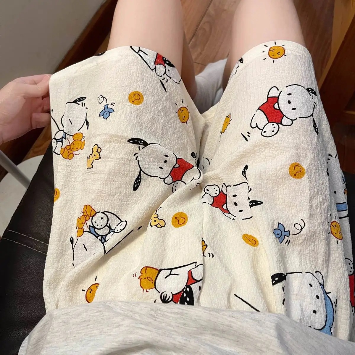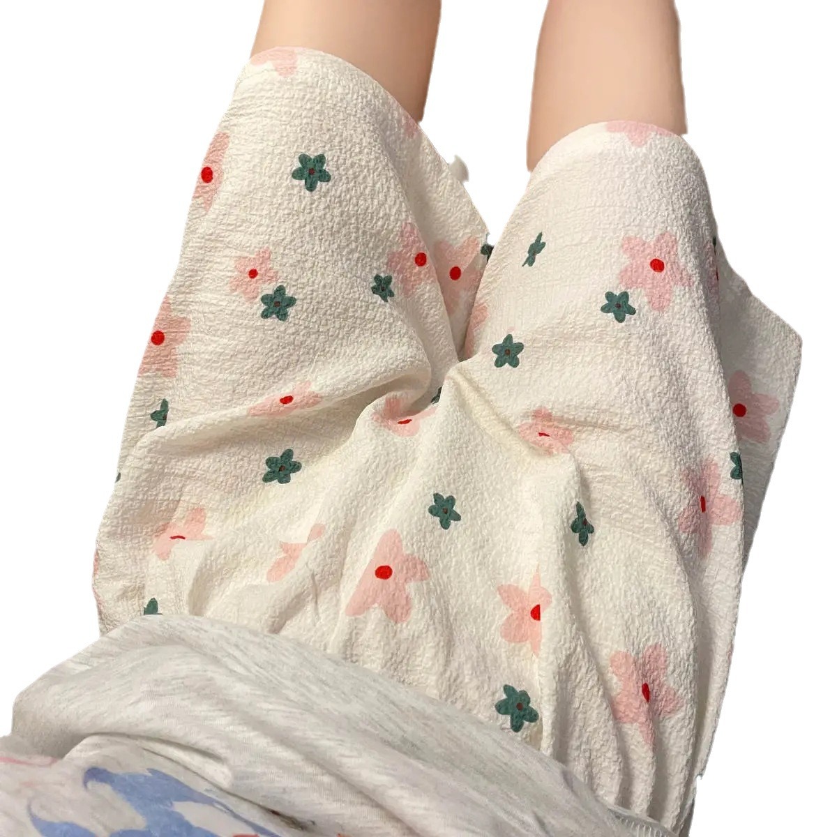 遛弯裤子睡裤女夏天薄款宽松休闲短裤印花卡通可爱防蚊裤家居长裤