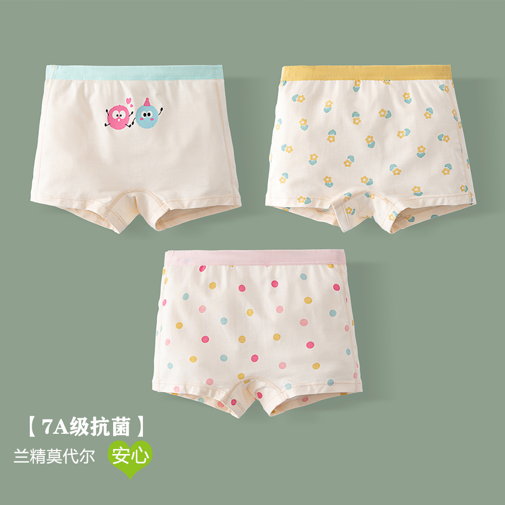 儿童冰丝平角裤女孩兰精莫代尔安全裤发育期抑菌不夹屁股女童内裤