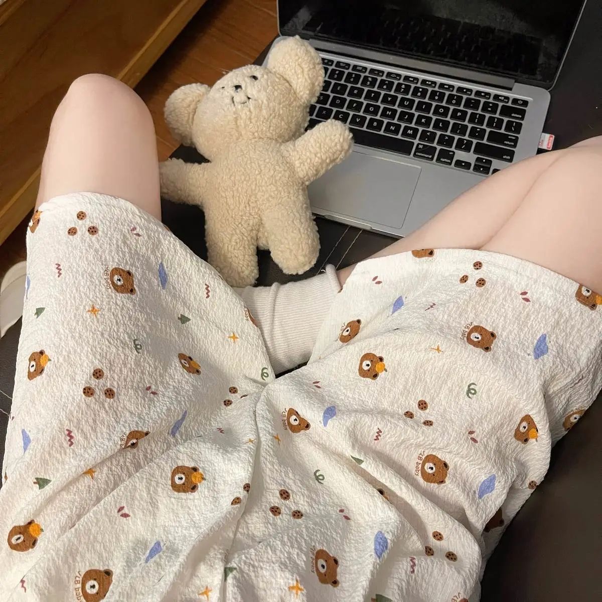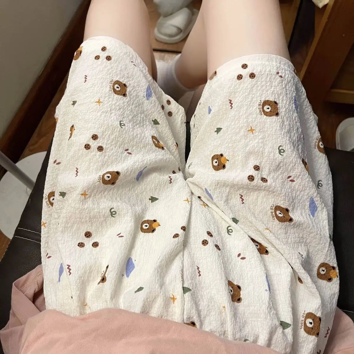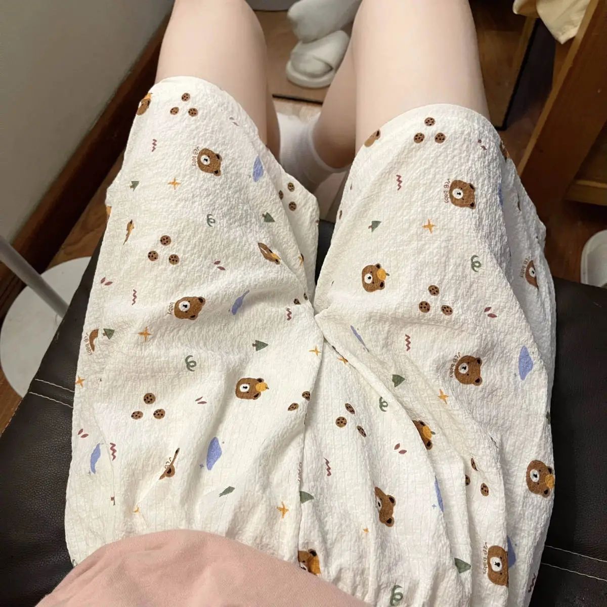 夏季睡裤女婴儿棉感防蚊裤卡通印花薄款休闲短裤居家裤外穿遛弯裤