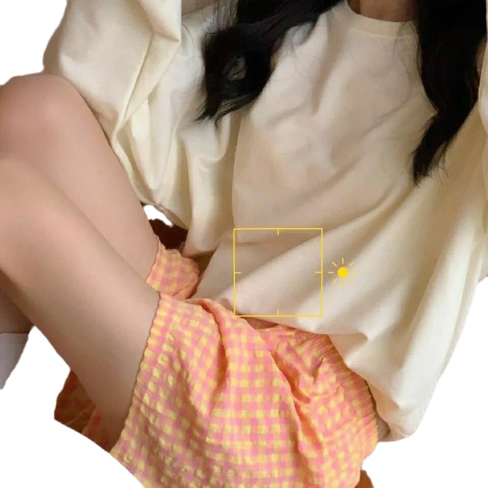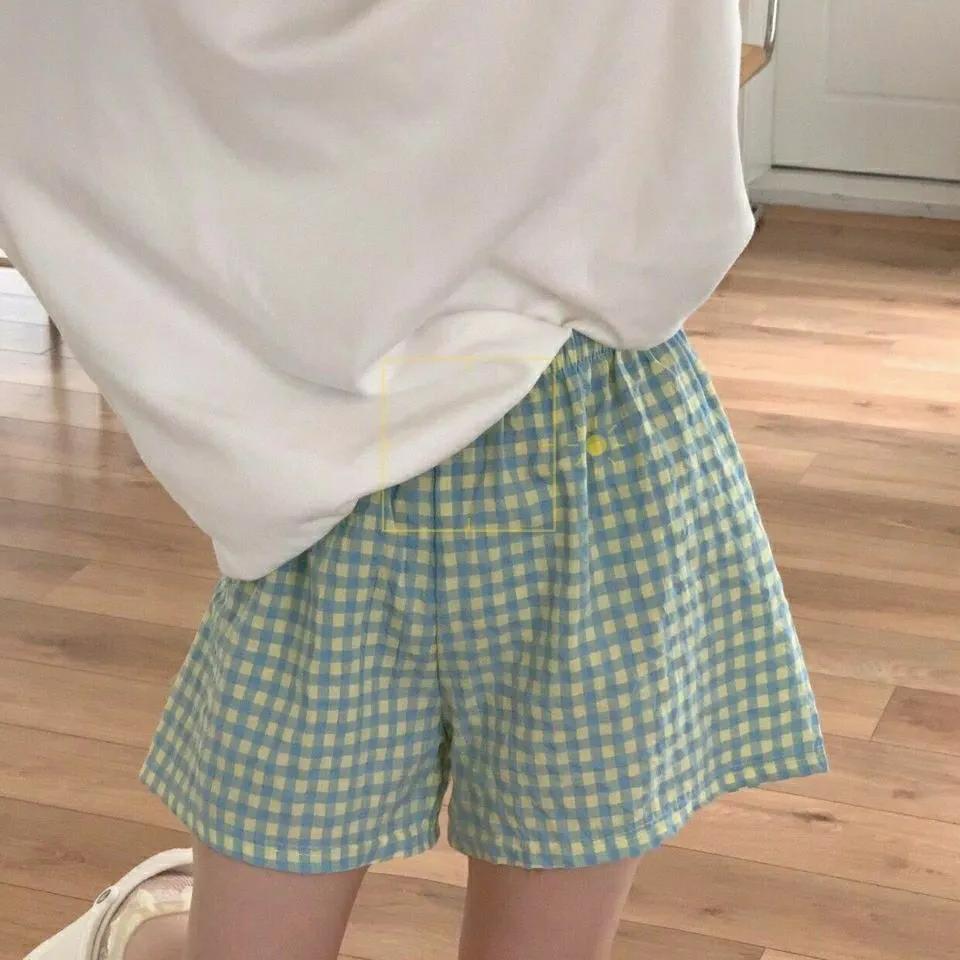拥抱夏天家居短裤碎花运动高腰显瘦阔腿裤宽松休闲格子睡裤