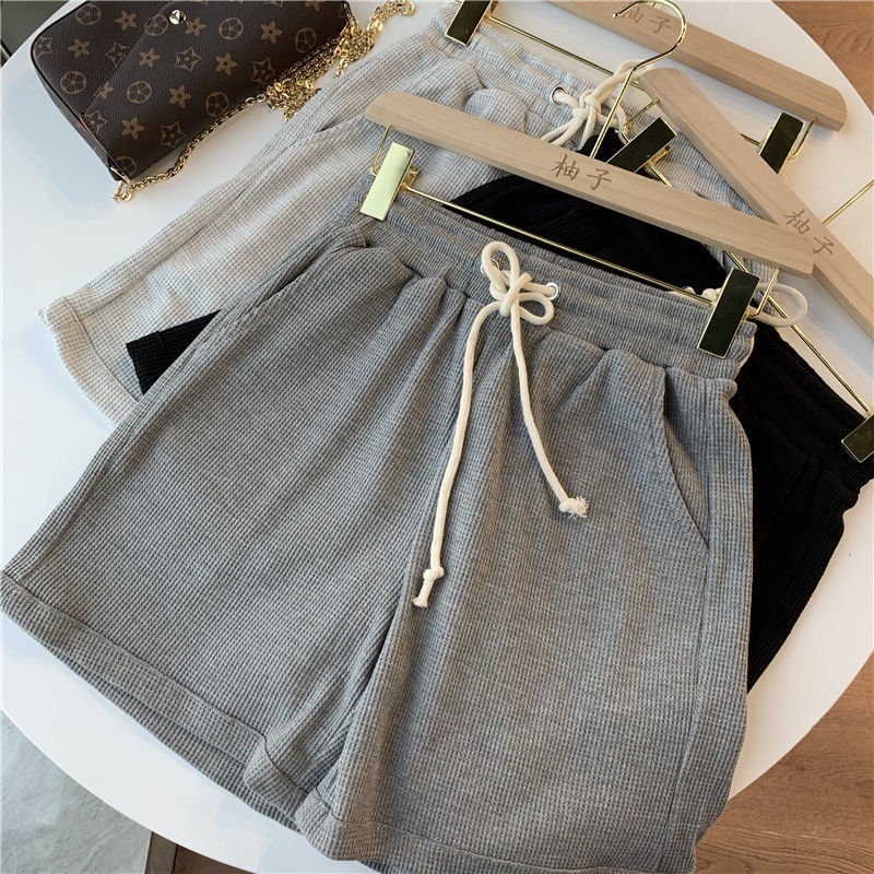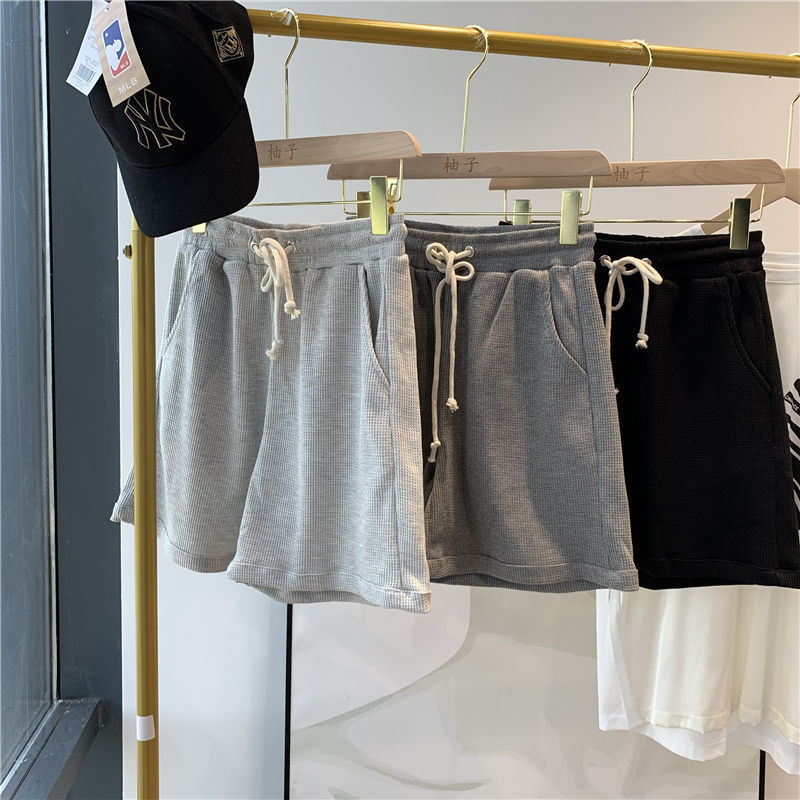 华夫格短裤女夏宽松新款休闲百搭运动高腰百搭阔腿学生裤子潮