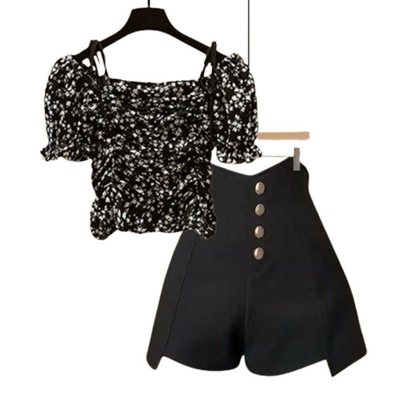 夏季气质轻奢套装女新款小众设计显瘦短袖高腰百搭短裤两件套