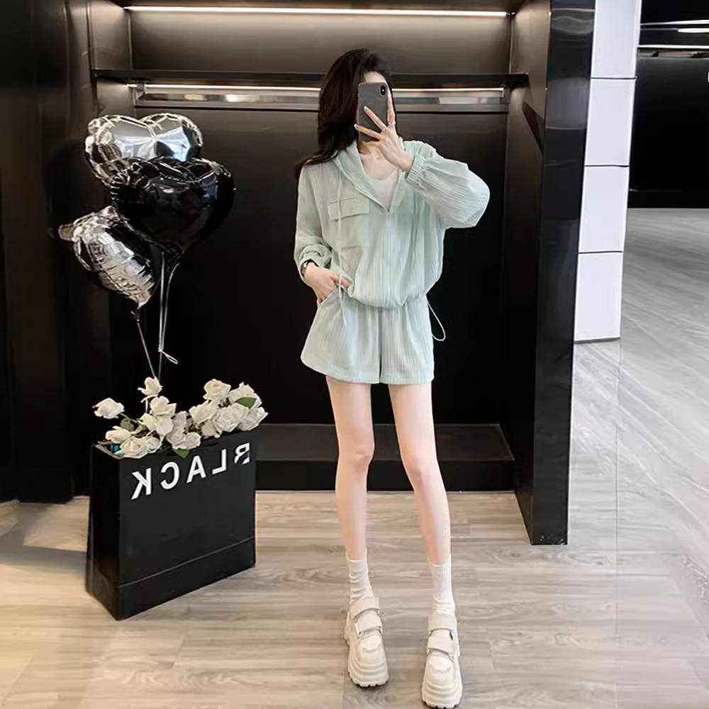 运动休闲防晒衫短裤套装女夏季新款小个子减龄度假风两件套装